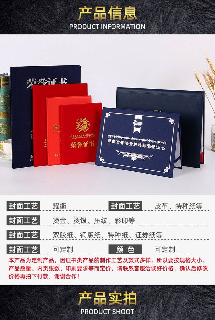 厂 家直 销量 大优惠珠光磨砂证书荣誉证书结业证书毕业证书奖状