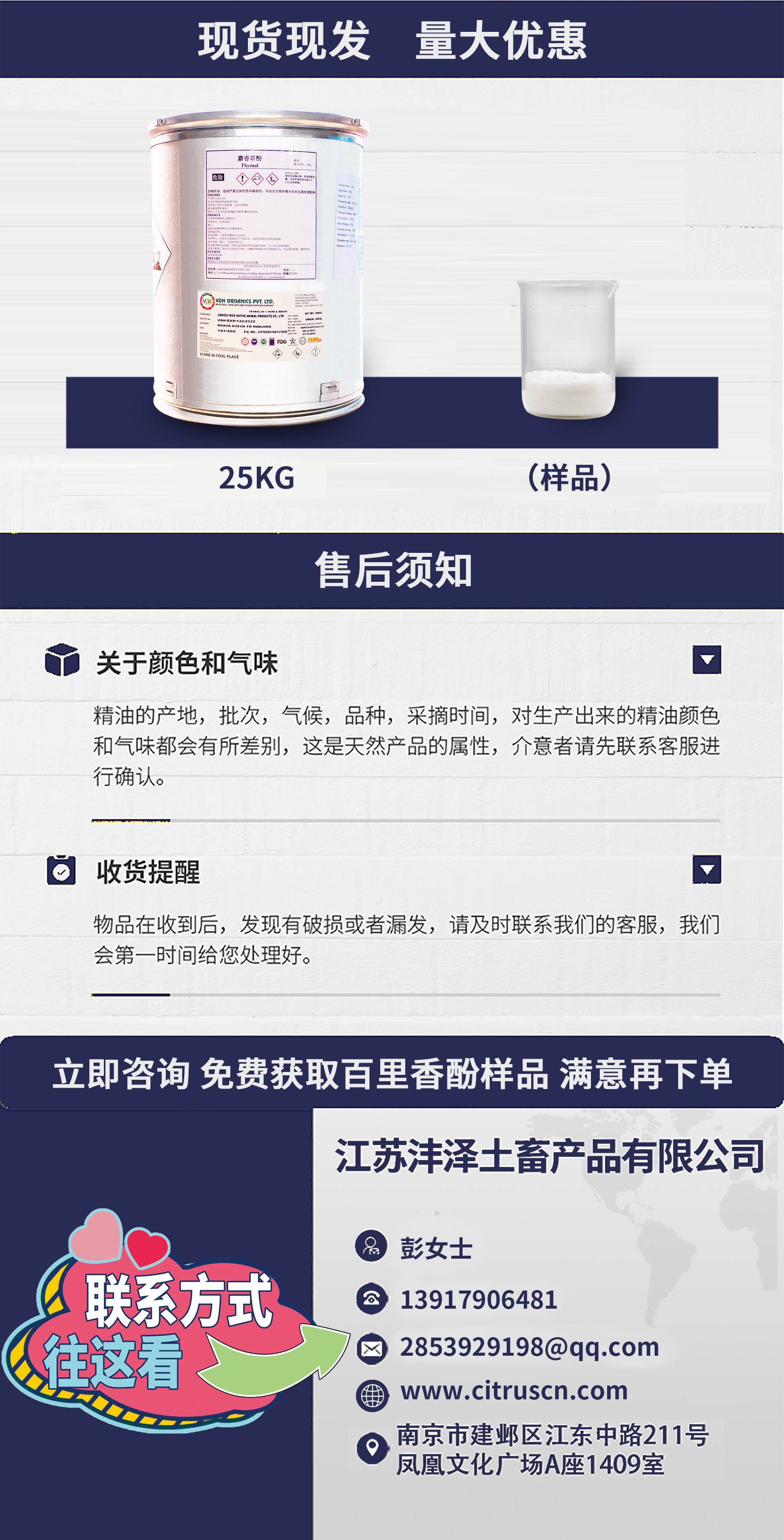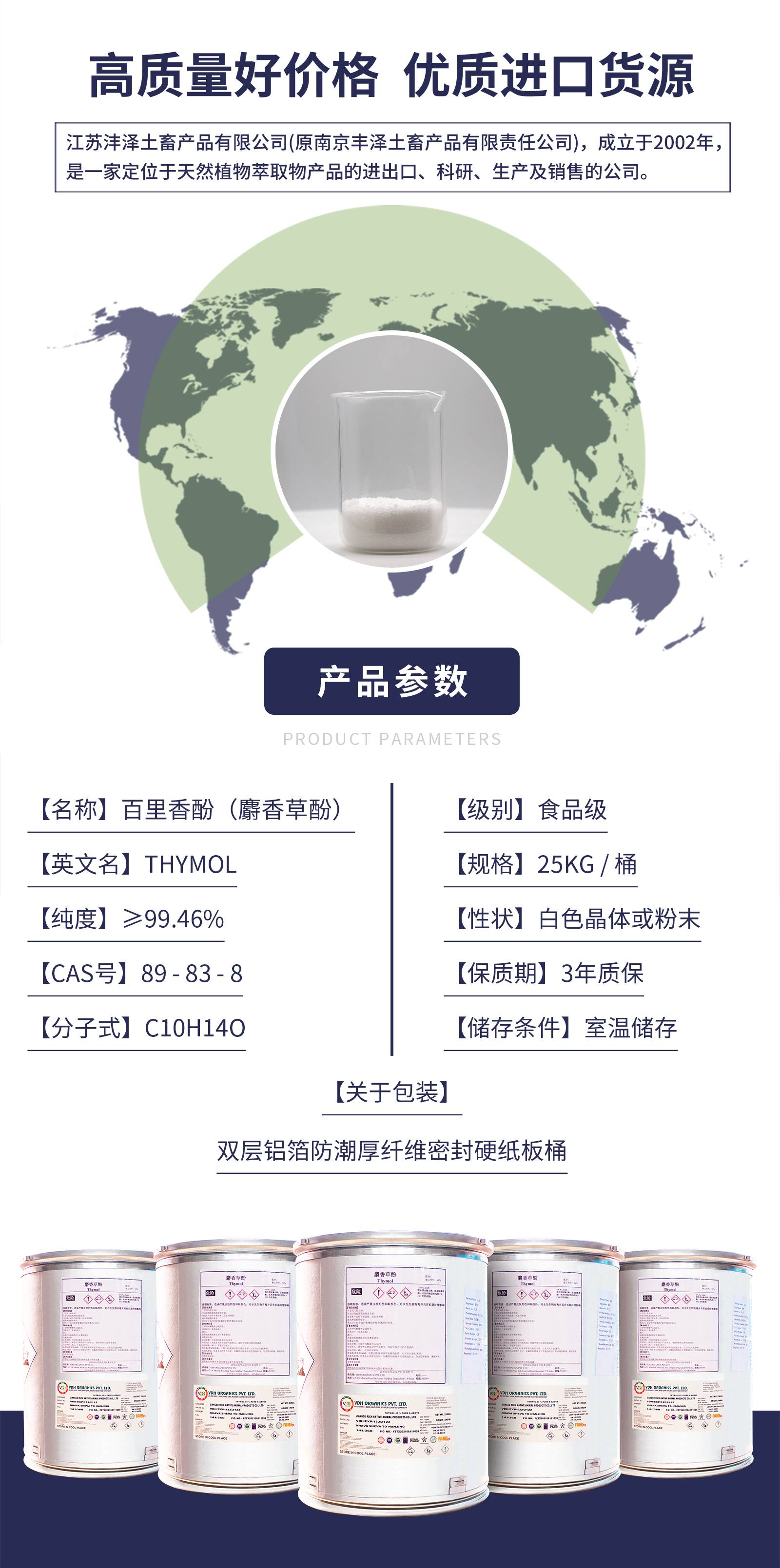 百里香酚储存 麝香草酚 25KG桶装 可提供安全证书 沣泽