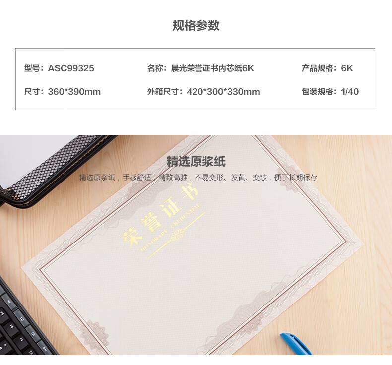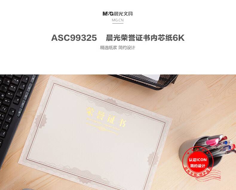 晨光荣誉证书内芯 6K证书内芯特种纸 50张/包ASC99325