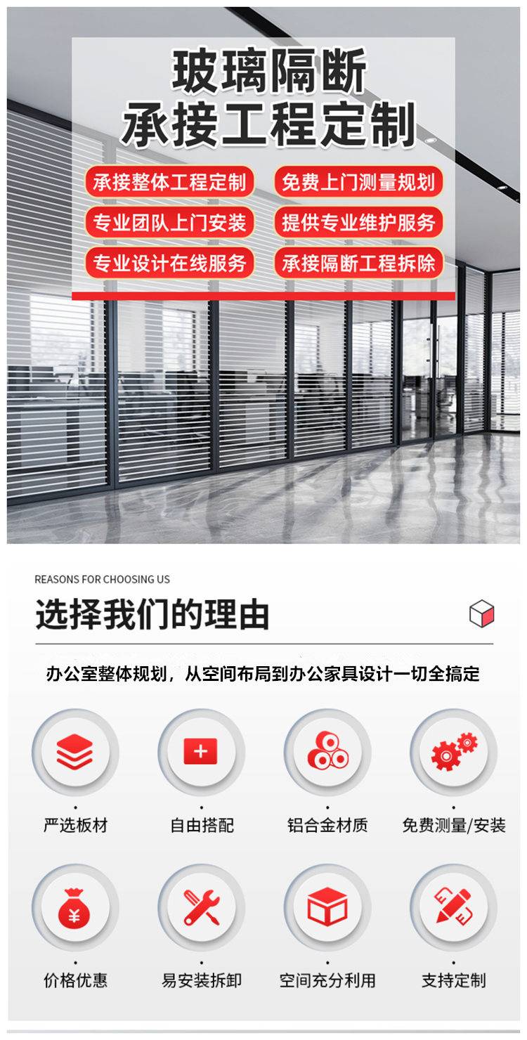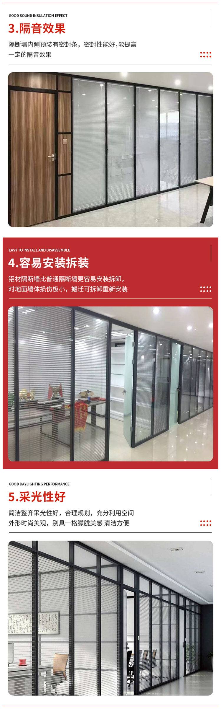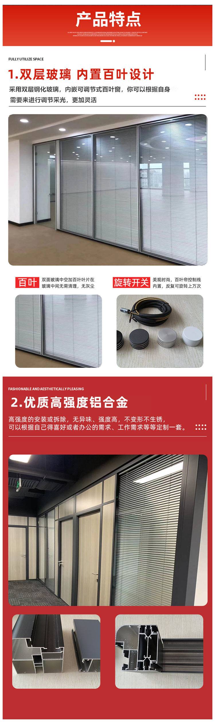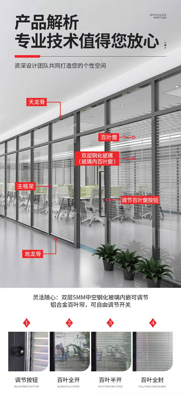 办公室浴室86型双玻璃隔断百叶高隔间活动隔墙铝材厂家定制