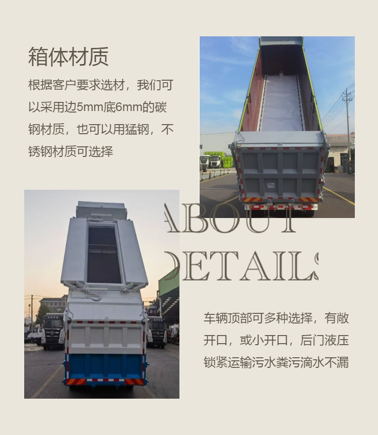 淤泥处理厂水渣污泥专用车 东风四轴箱式垃圾自卸车 车厢液压缸提升