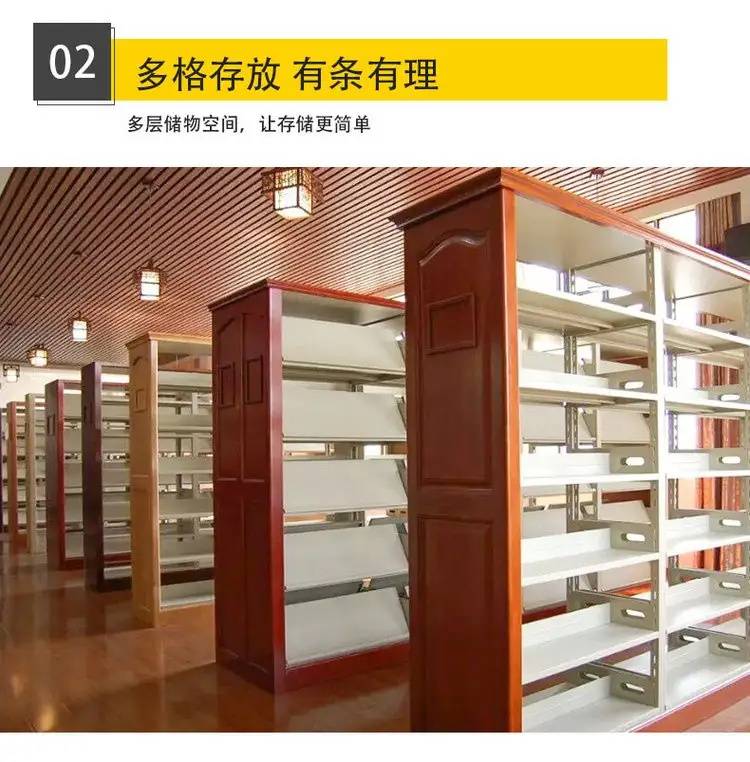 金钱豹阅览室双面钢木书架易清洁规格多样实体厂家
