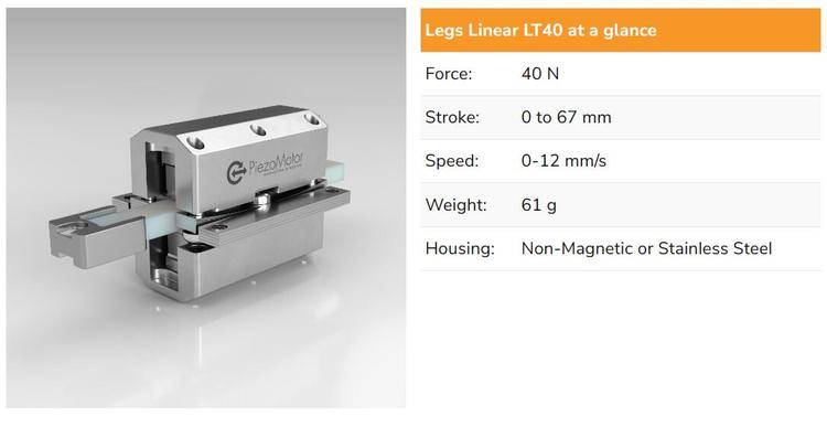 LTC40直线电机:双缸概念设计用于在紧凑的车身中实现高力输出,在这种情况下,失速力为 40N。这提供了更坚固的设计,无需滚珠轴承。