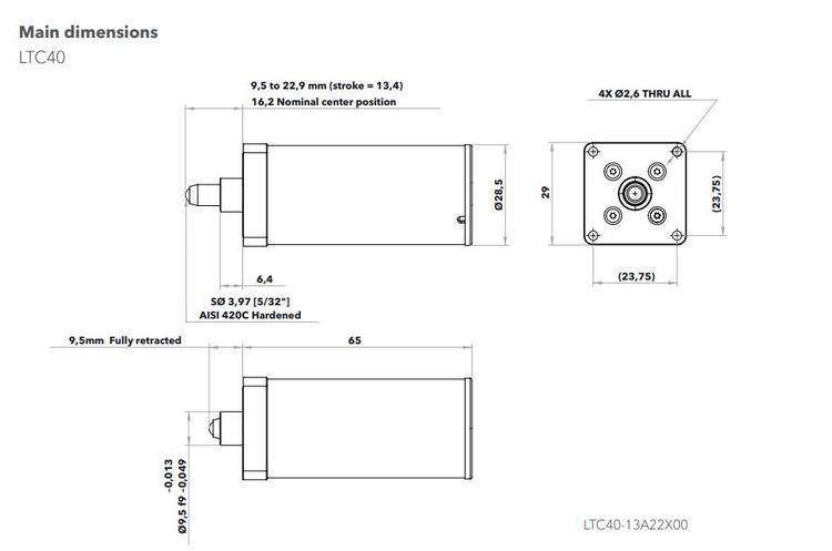 LTC40 版本与 LT40 类似,但具有覆盖范围,并且具有最大 12.8mm 的行程。不附带内置编码器,但提供一系列适配器解决方案。
