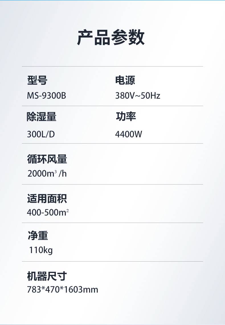 湿美工业除湿机机 适用500~580㎡ 大功率抽湿机 车间抽湿器 MS-9300B