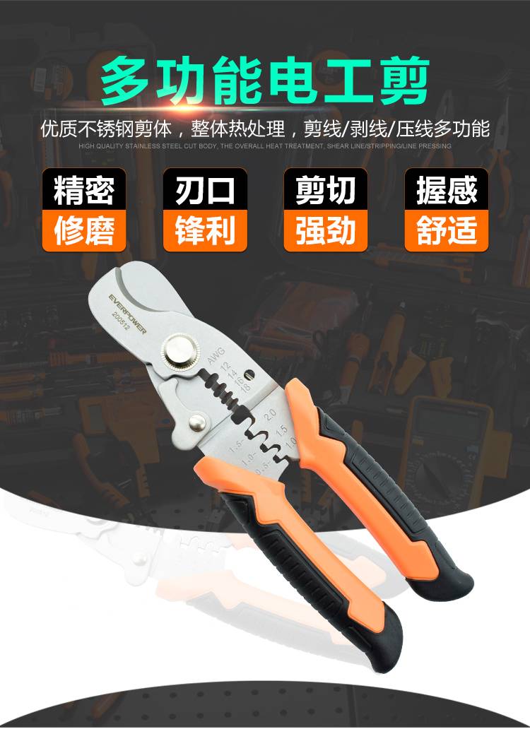 艾威博尔 检修五金手动工具 多功能电工剪 通讯电力