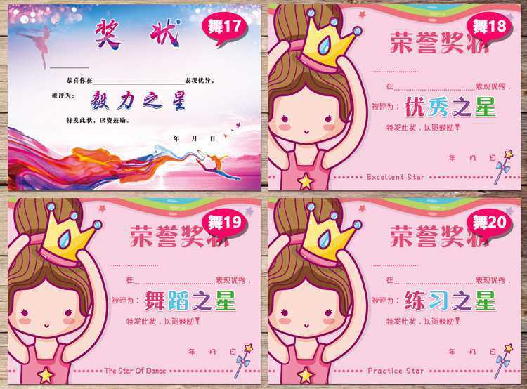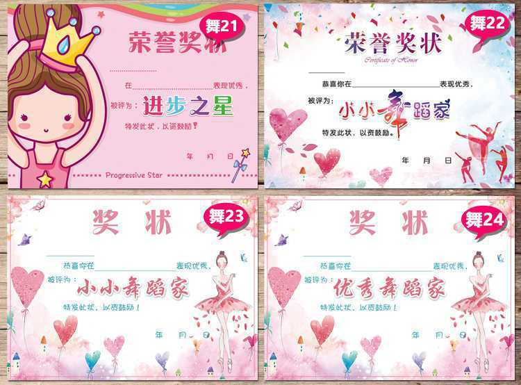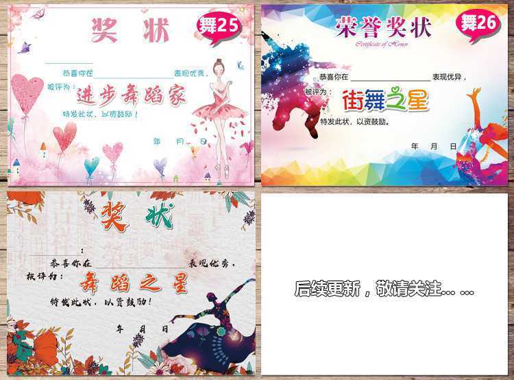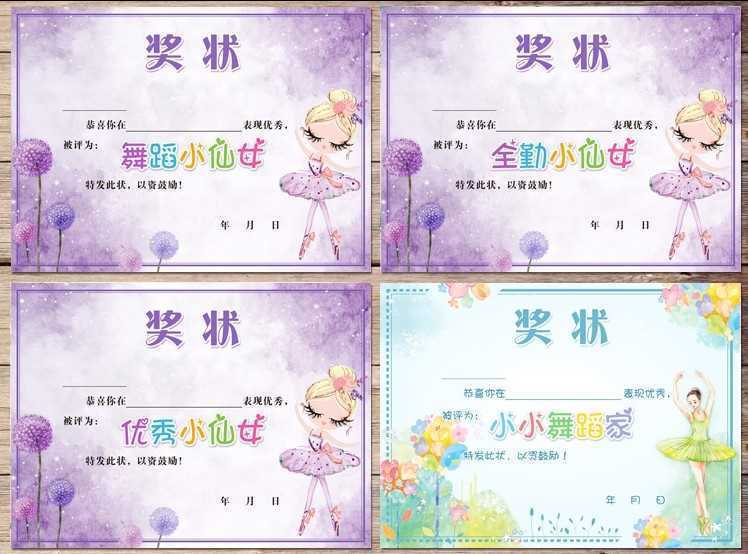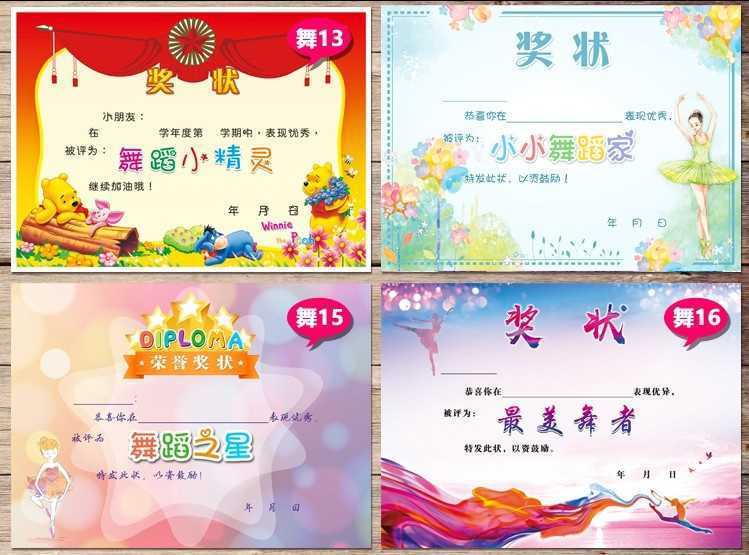 多款公舞蹈奖状证书 幼儿园培训学校舞蹈奖 励奖状 舞蹈批发