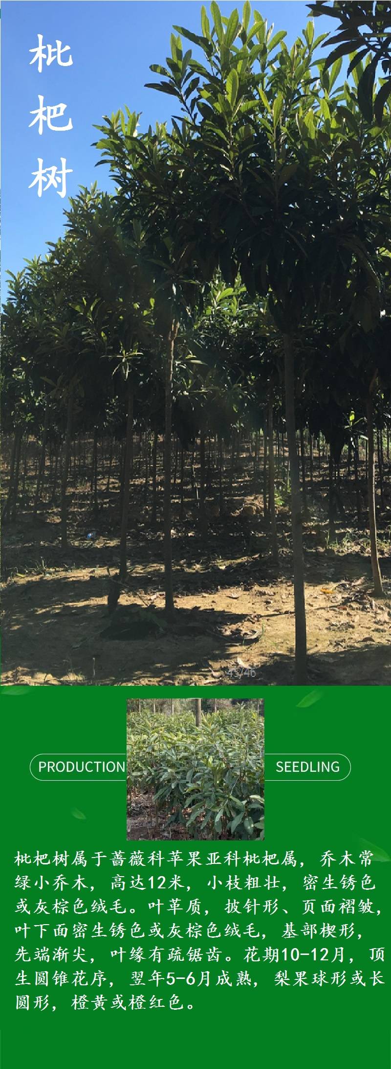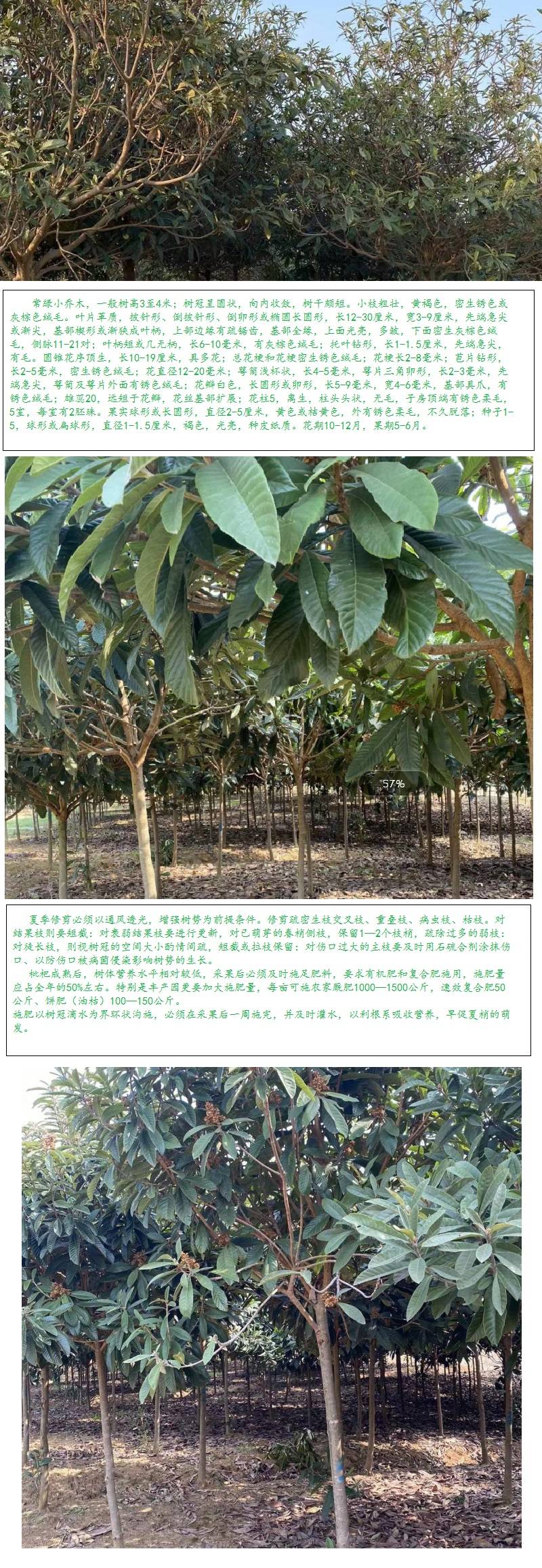高分枝枇杷树 生圆锥花序 翌年5-6月成熟 梨果球形或长圆形