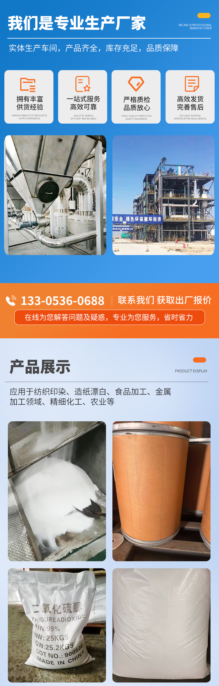 2222二氧化硫脲晶体 纺织印染助剂 CAS1758-73-2 源头厂家