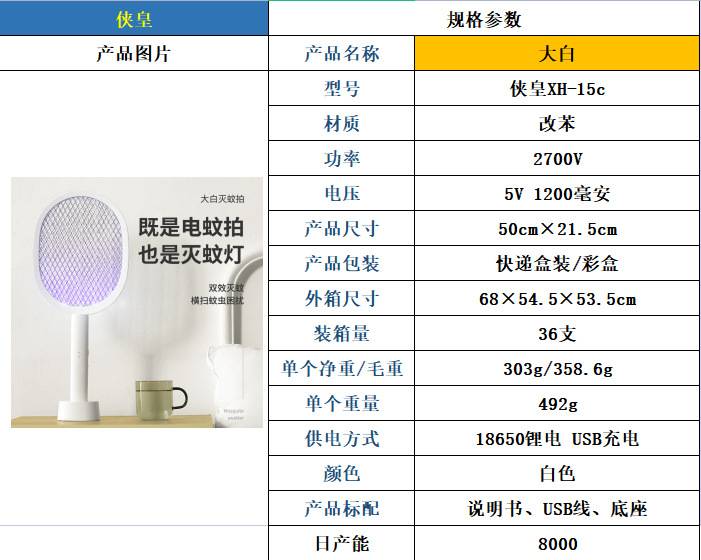 美斯特电蚊拍XH-15充电式二合一灭蚊灯家用自动防蚊诱蚊驱蚊器