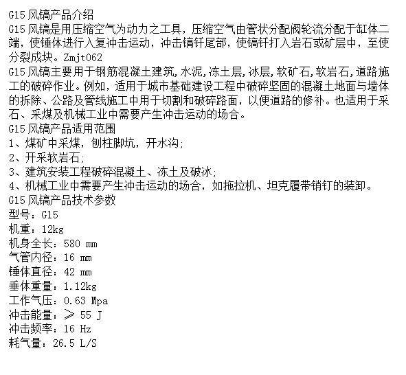 G15风镐气动工具 用途多 结构简单 使用安全 煤矿业使用