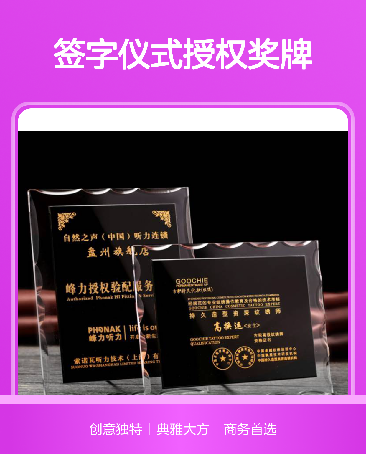 水晶签字仪式授权奖牌 定制服务 工艺精湛 典雅大方