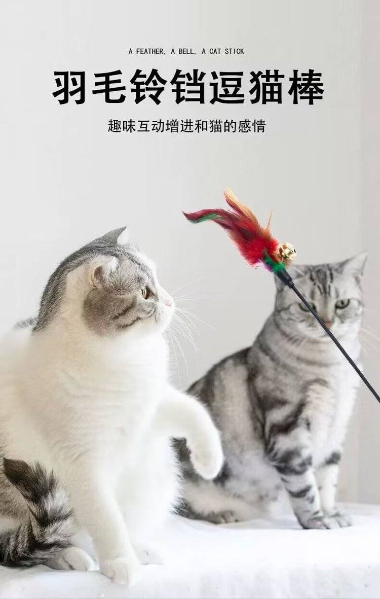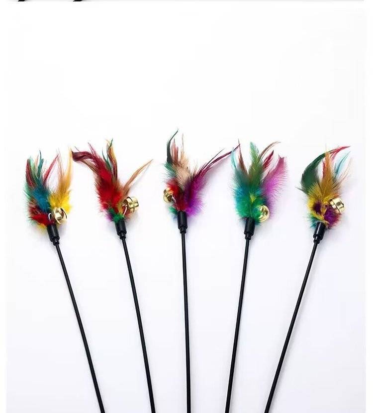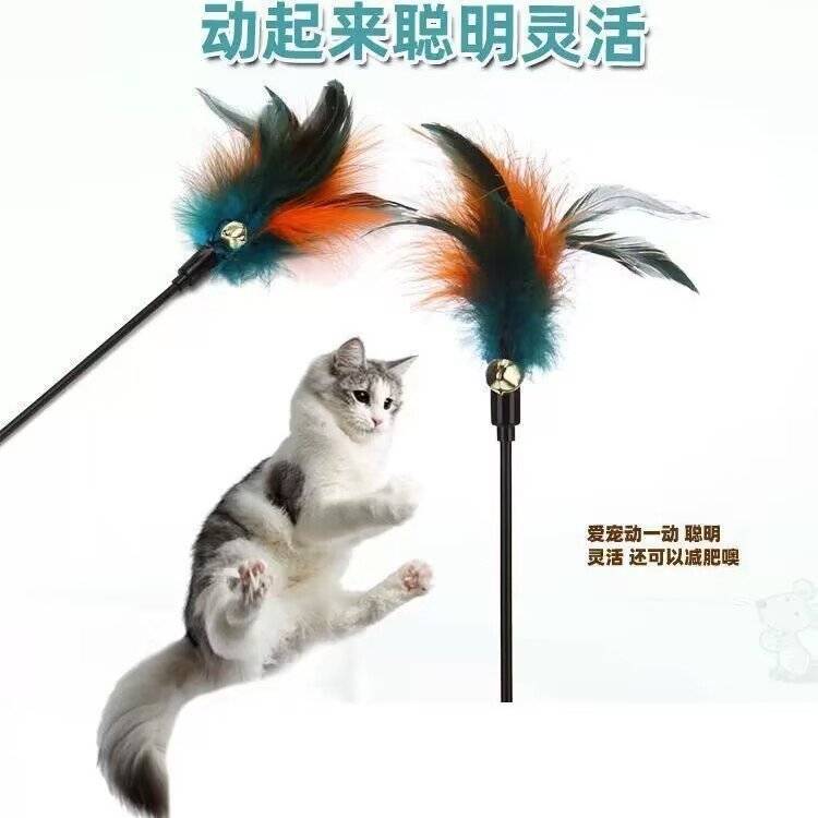 逗猫棒彩羽毛铃铛黑杆猫咪互动解闷逗猫杆猫玩具厂批发