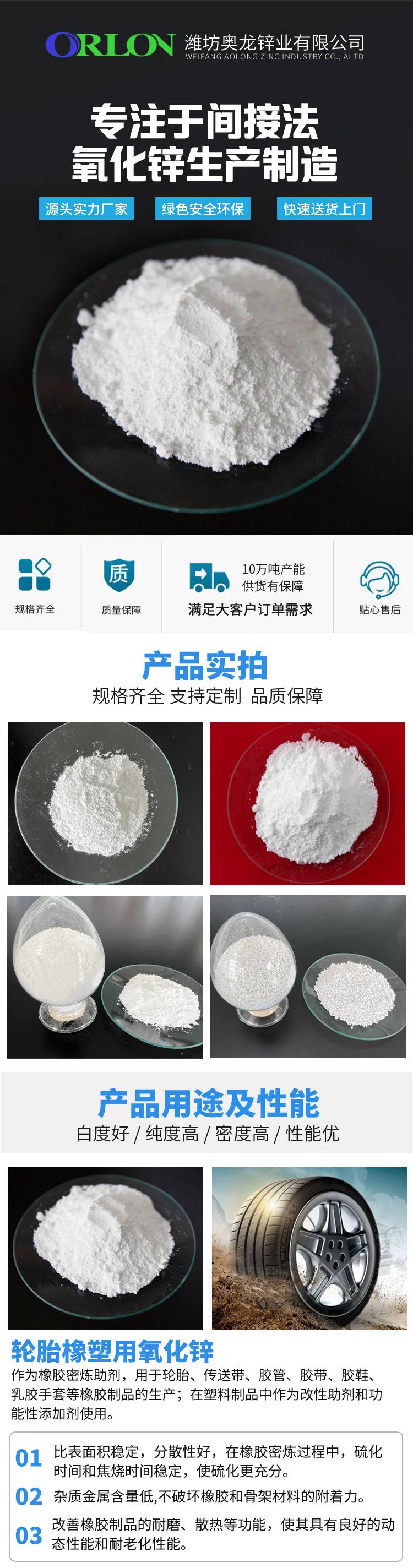 奥龙锌业厂家销售 橡胶用氧化锌 白色粉末 防老剂 支持拿样