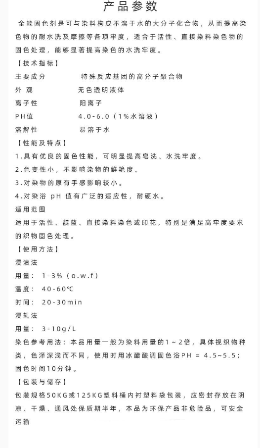 2222印染助剂 全能固色剂Y 适用于任何面料提高织物水洗及耐摩檫牢度