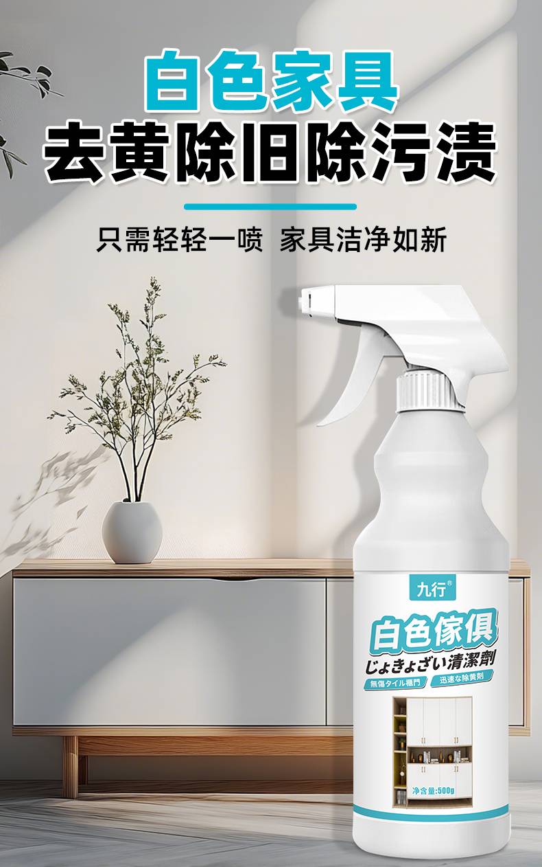九行白色家具清洁剂柜子餐桌污渍黄渍清洁衣柜鞋柜去黄除旧清洁