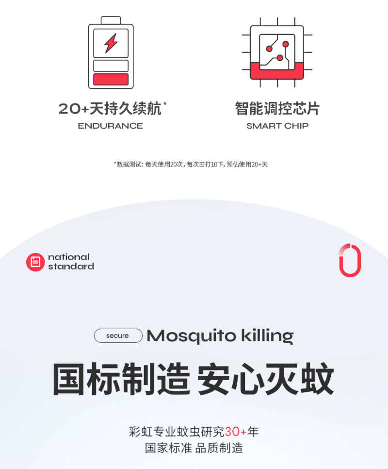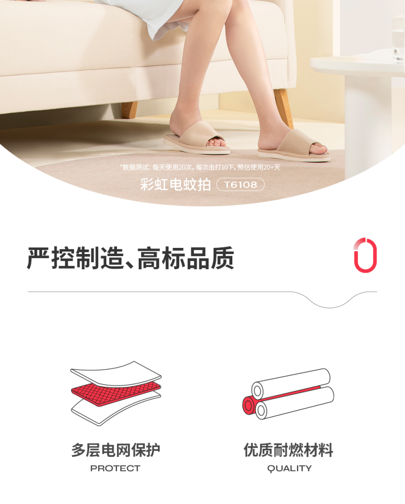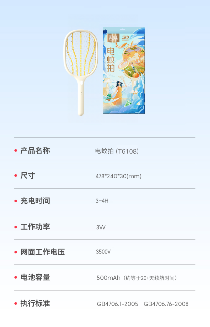 【企业合作】彩虹 家用电蚊拍 充电式苍蝇拍 物理灭蚊T6108