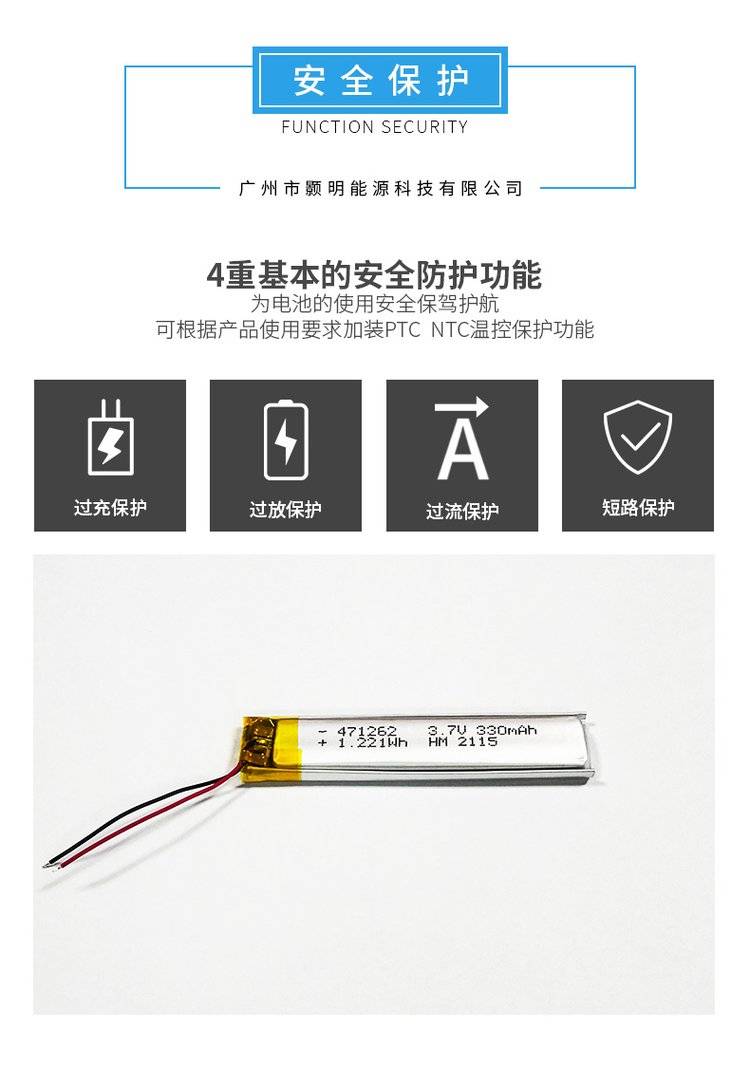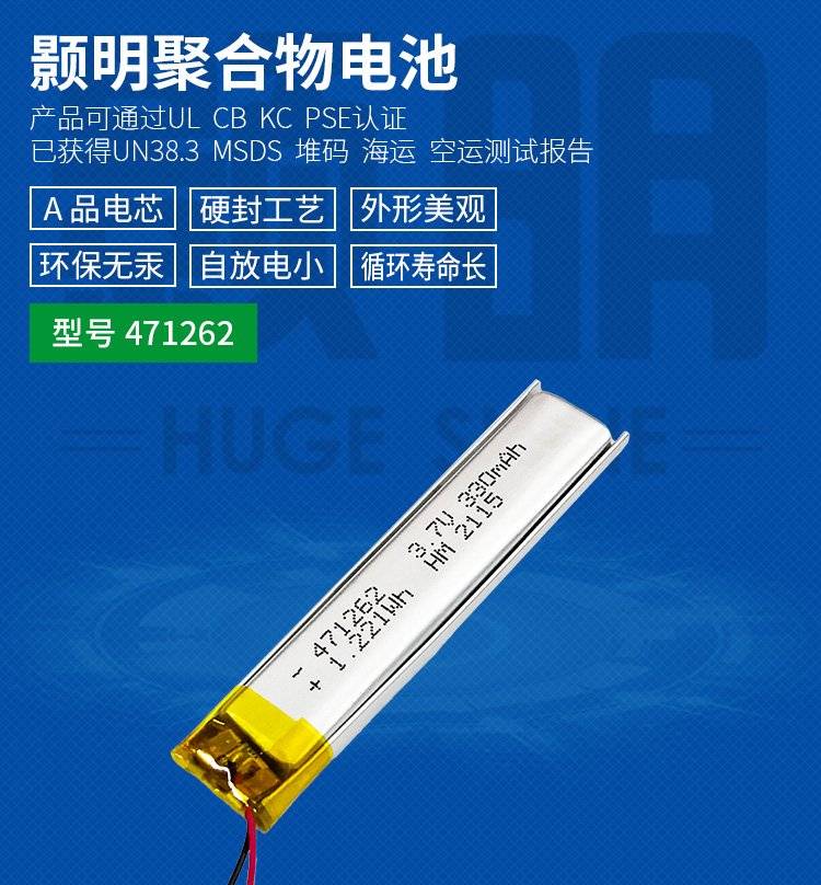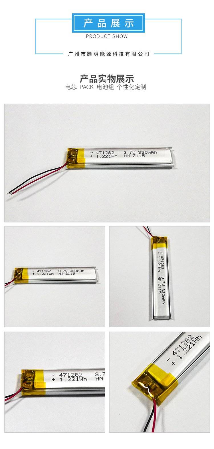 451268 471262 3.7v280mAh自拍杆电蚊拍电动牙刷长条形锂电池公司