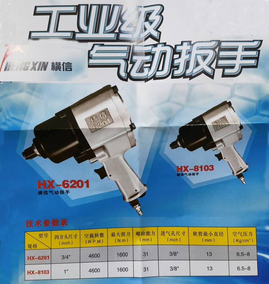 横信气动工具 HX-8103,1寸方驱双锤冲击式风炮扭矩可达1600NM