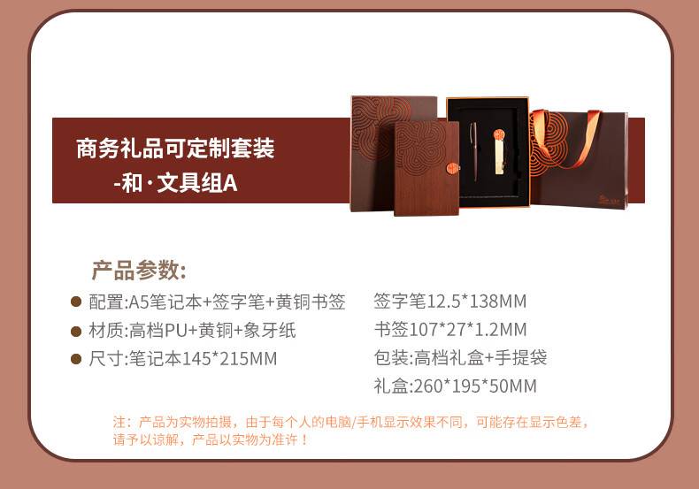 卓朴A5笔记本+签字笔+黄铜书签礼盒套装 商务伴手礼定制印LOGO