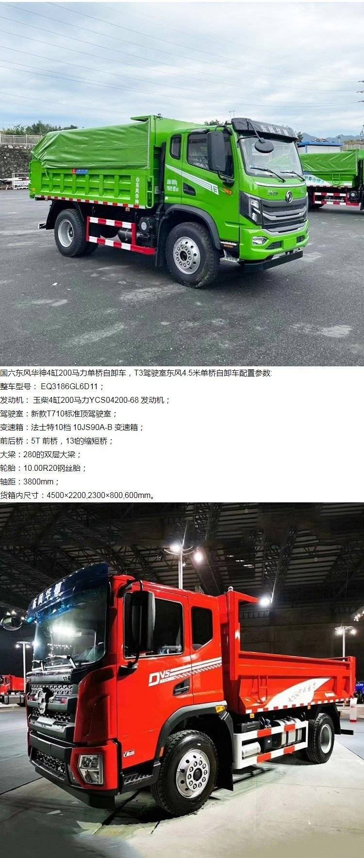 国六东风华神玉柴200单桥自卸车 4.5米工程翻斗车 4米5渣土车