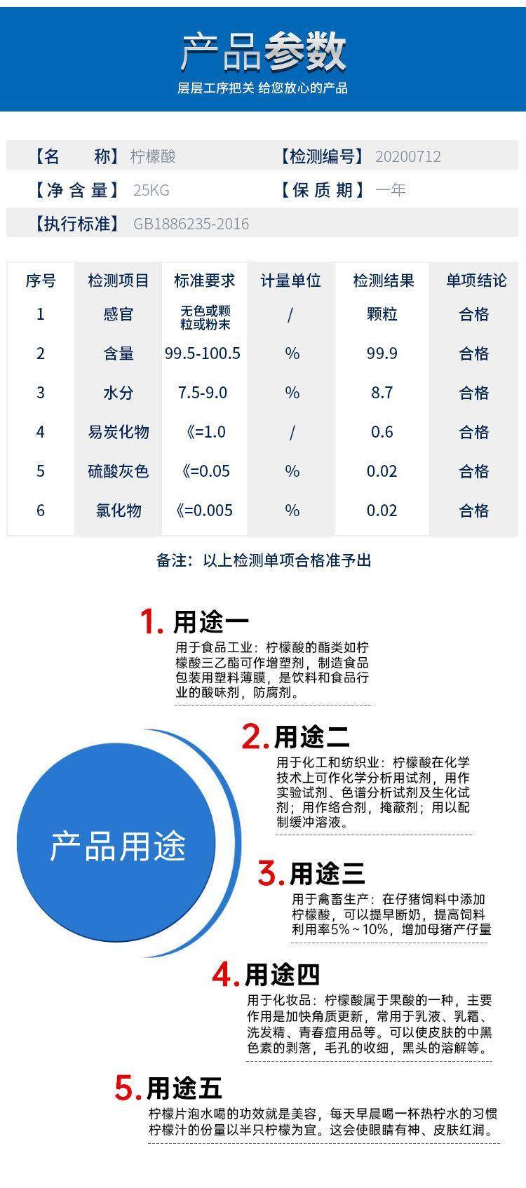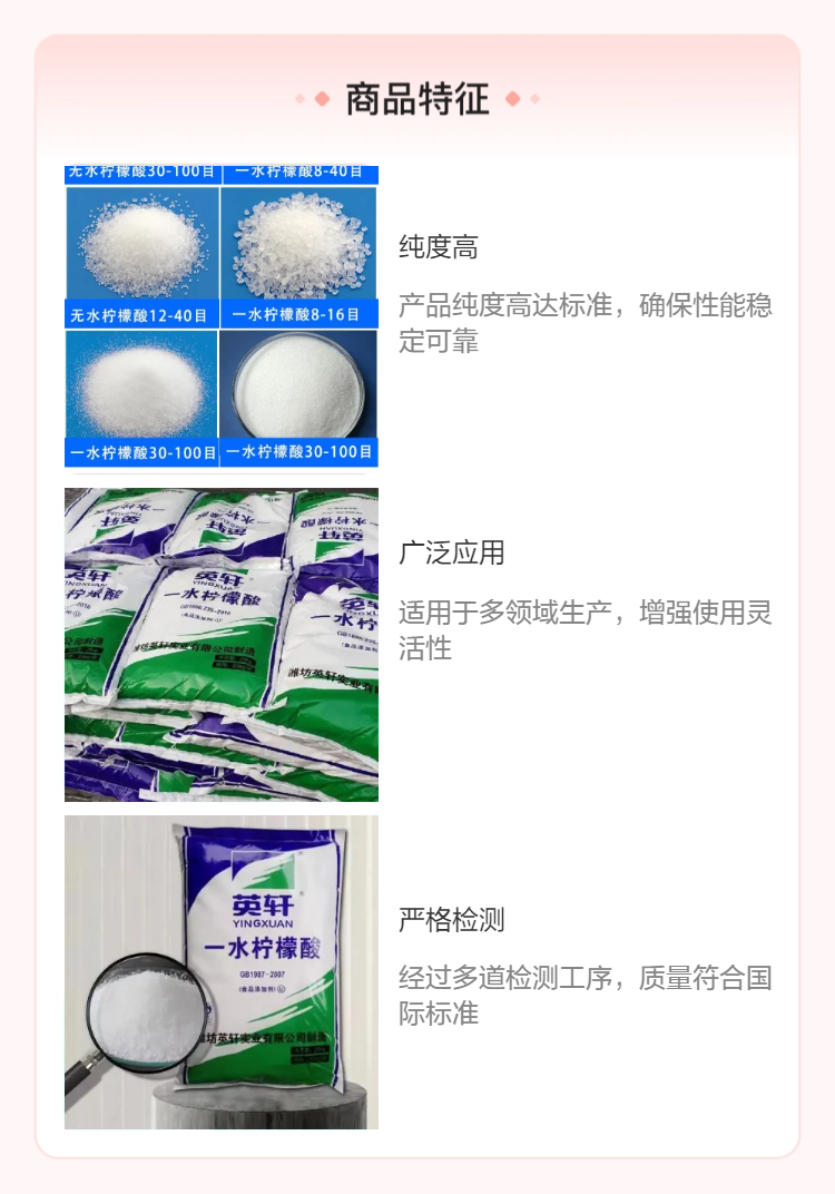 2222英轩一水柠檬酸 99%高纯度颗粒状 高效水处理剂 国标品质