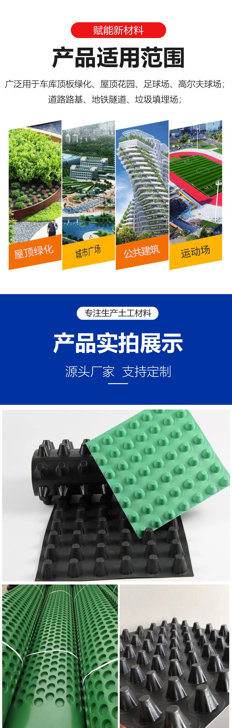 凹凸型塑料排水板 园林绿化车库疏水板 绿色HDPE滤水板 排水效果好