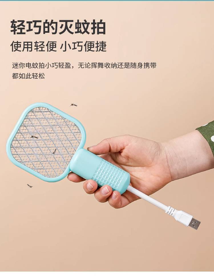 白色-【超值功能3合1】电蚊拍+充电线+吸蚊灯-1个装,绿