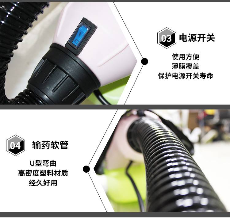 祝丰DJ-8L超低容量喷雾器,采用高密度塑料U型管,经久耐用,可以多角度喷雾,符合施工要求。