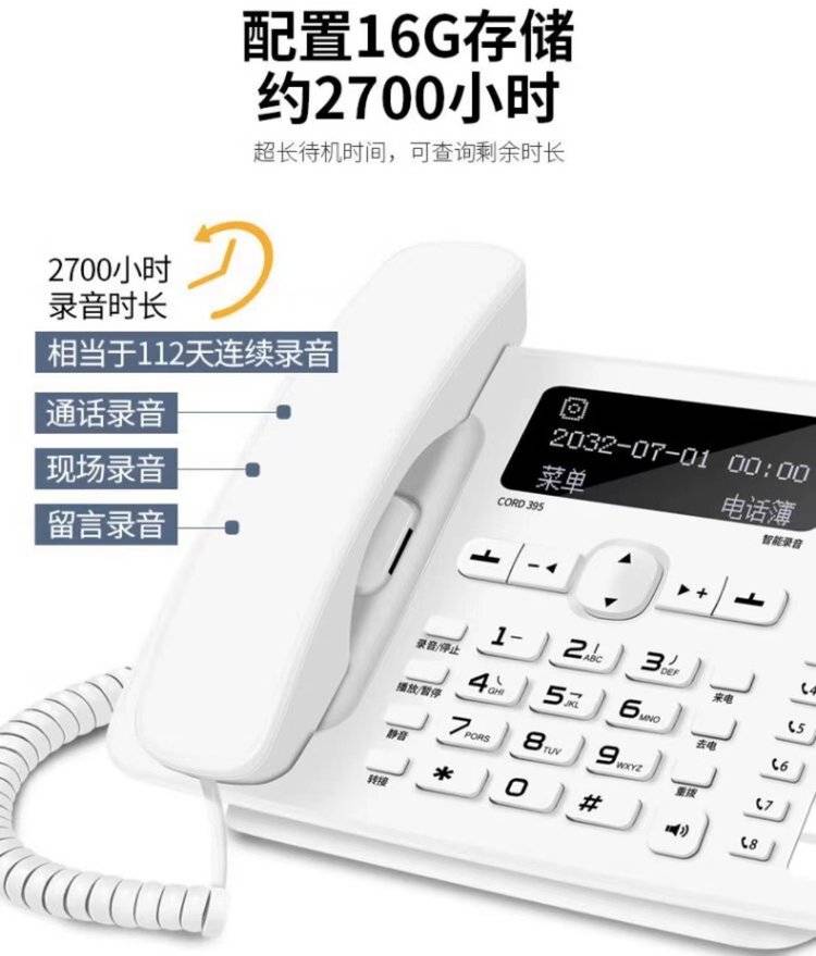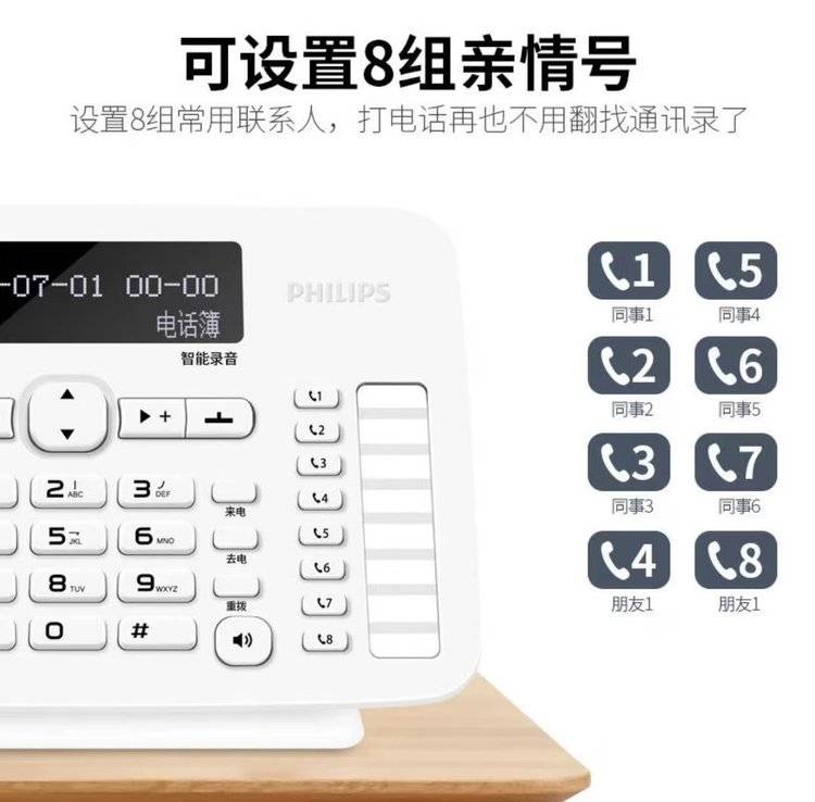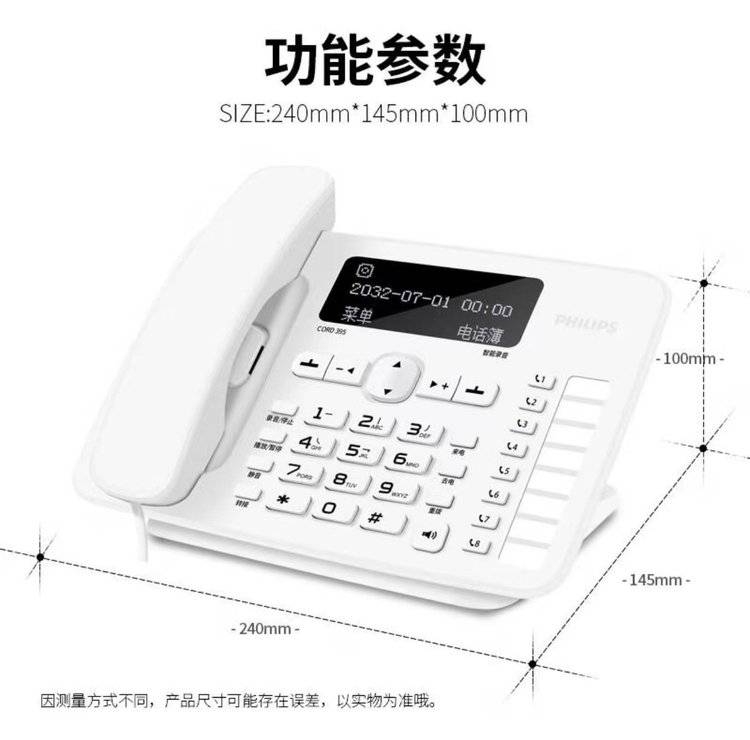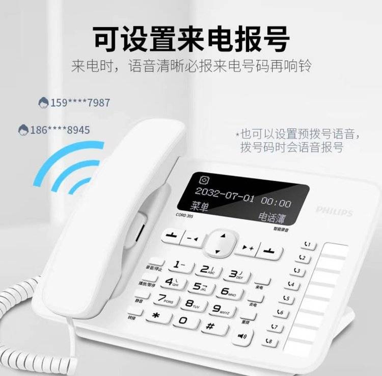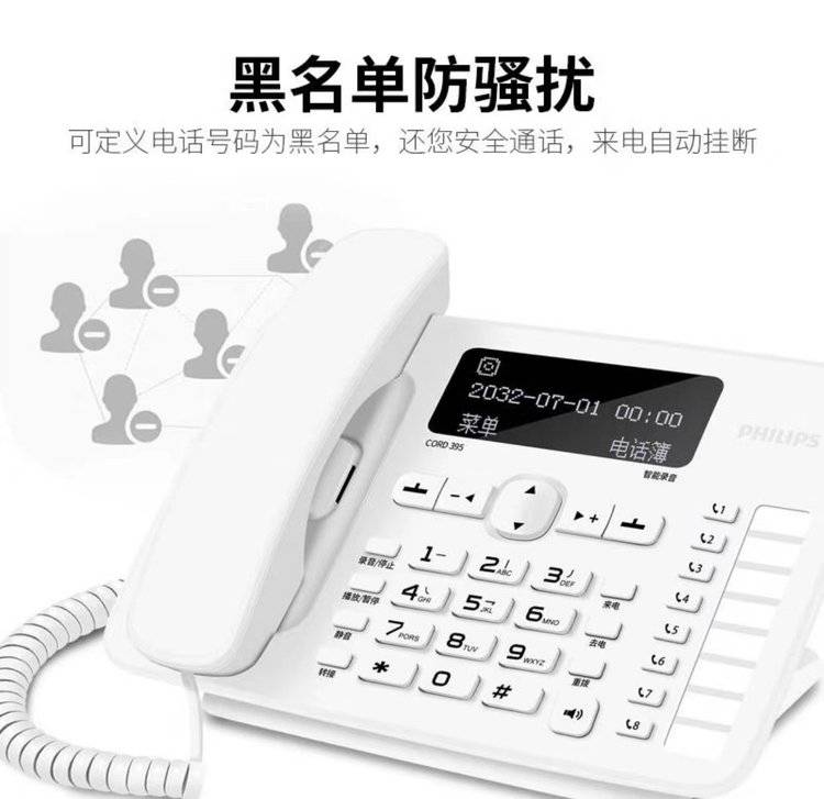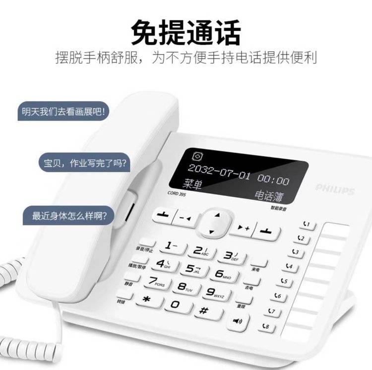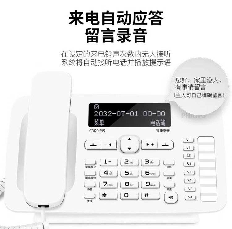 飞利浦CORD395 自动 手动录音电话机 办公家用固定座机中文电话本