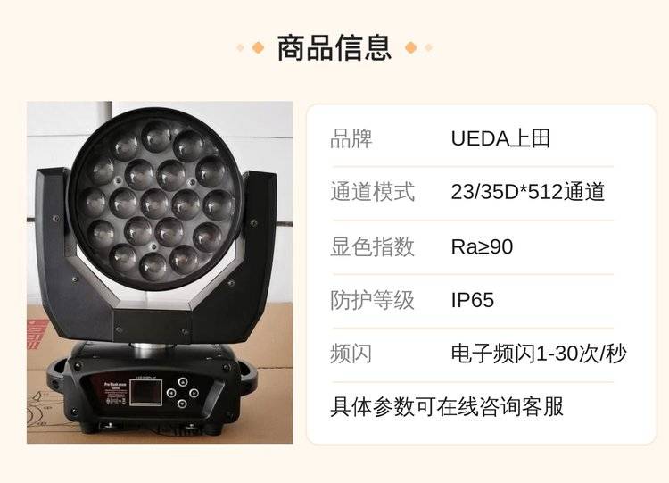 UEDA上田专业舞台灯光帕灯三基色电脑摇头光束成像灯