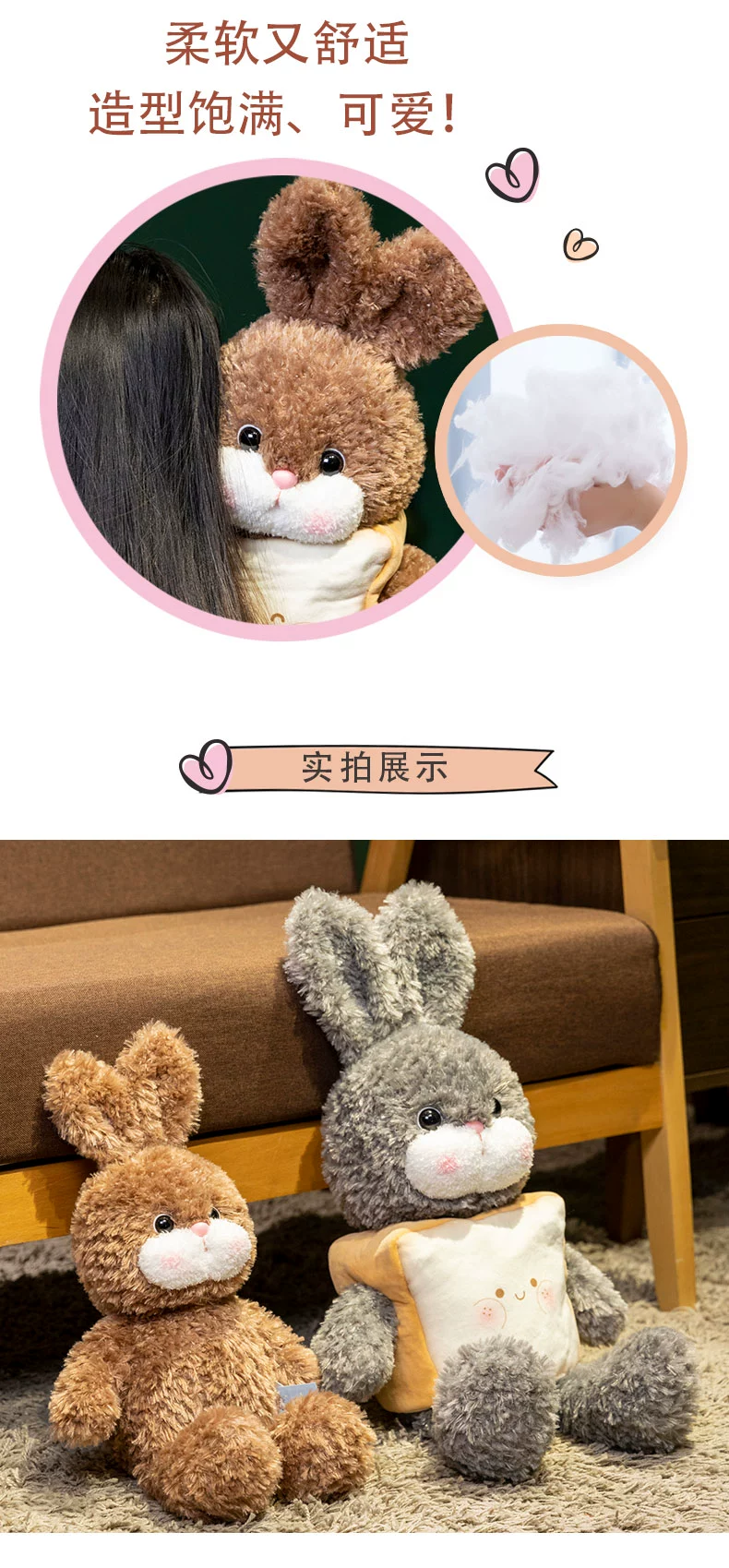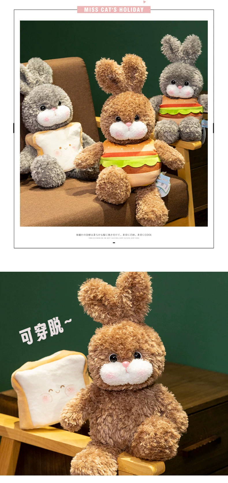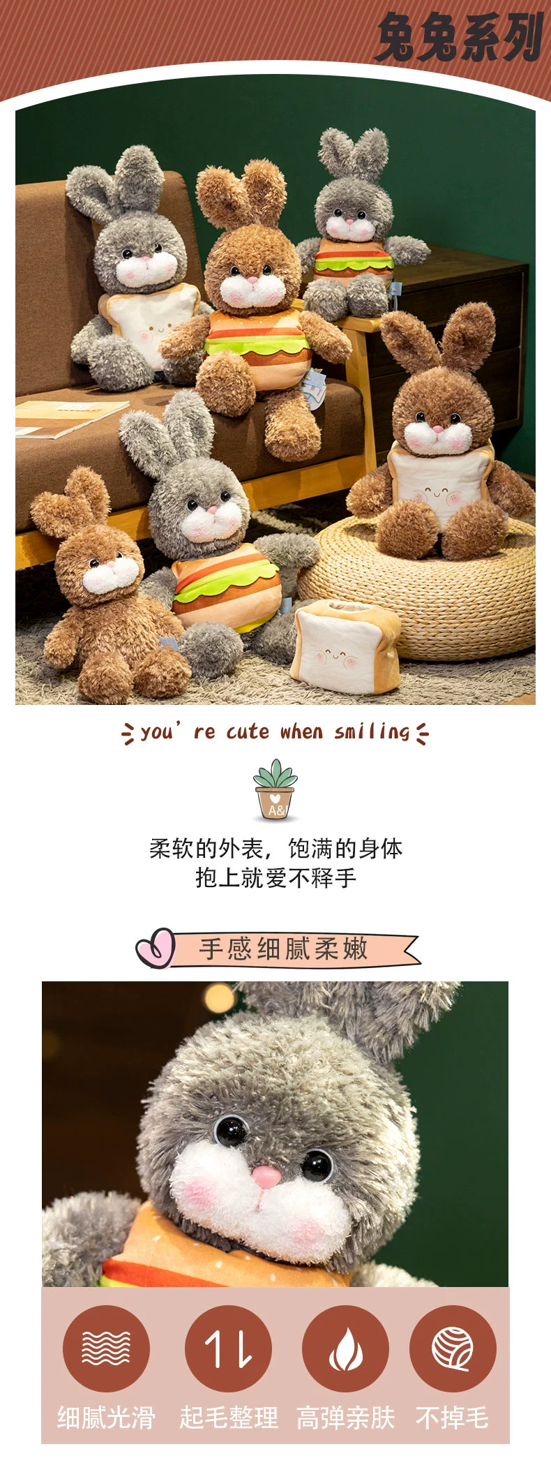 灰色汉堡兔,棕色汉堡兔,灰色面包兔,棕色面包兔