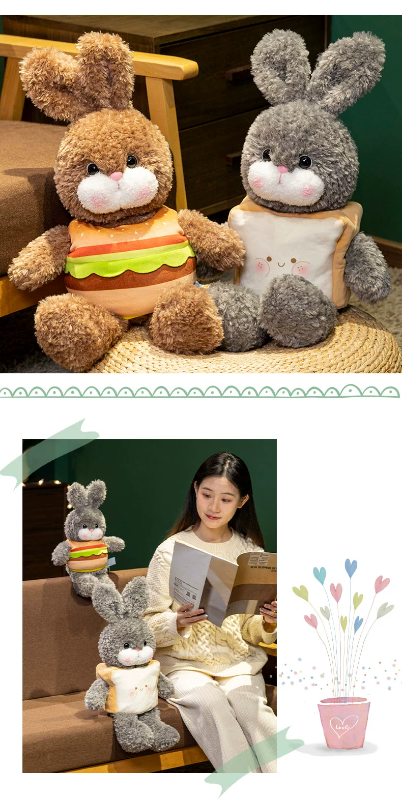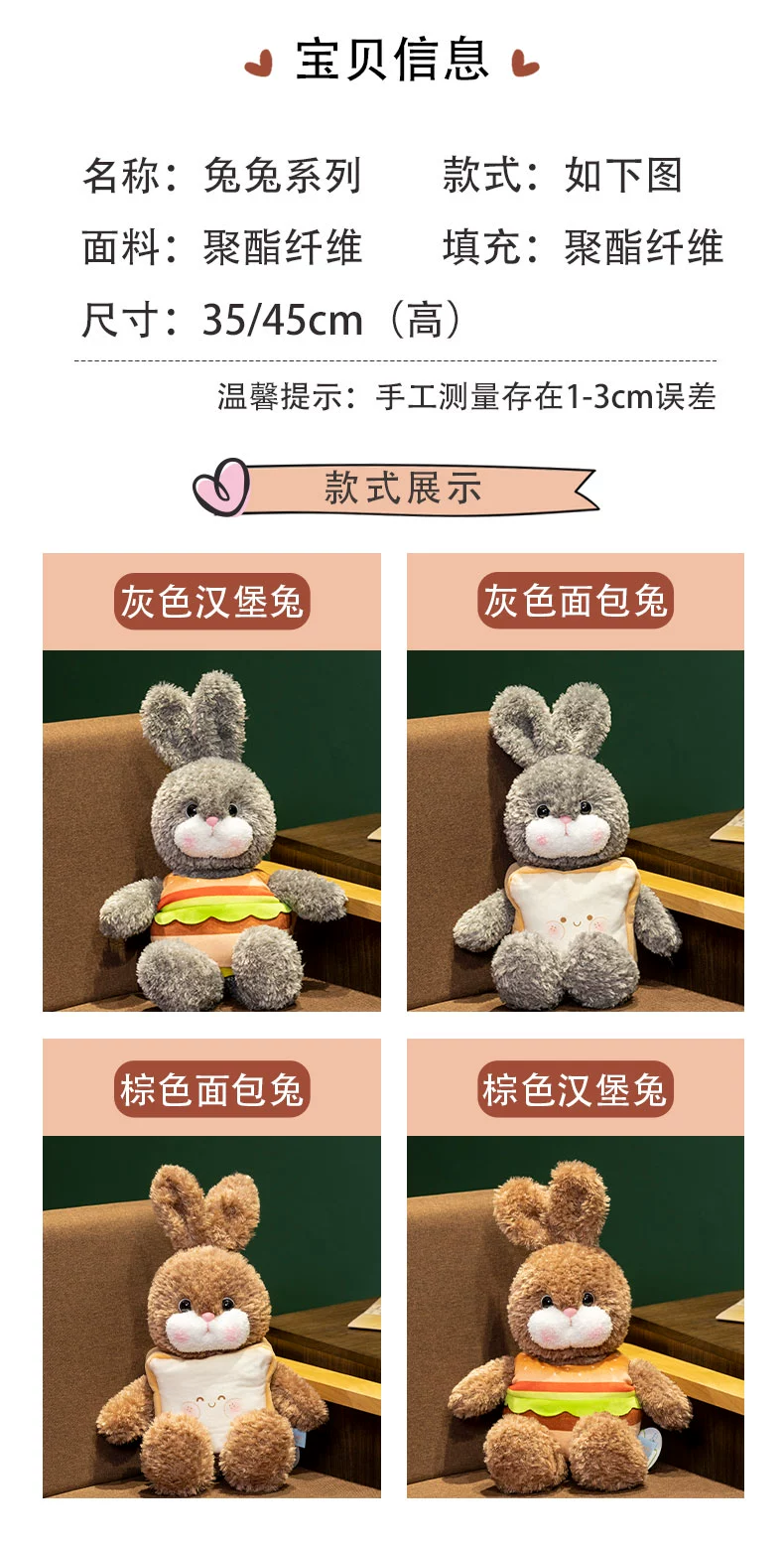 赛特脱面包兔子公仔创意汉堡兔玩偶毛绒玩具儿童女生日礼物