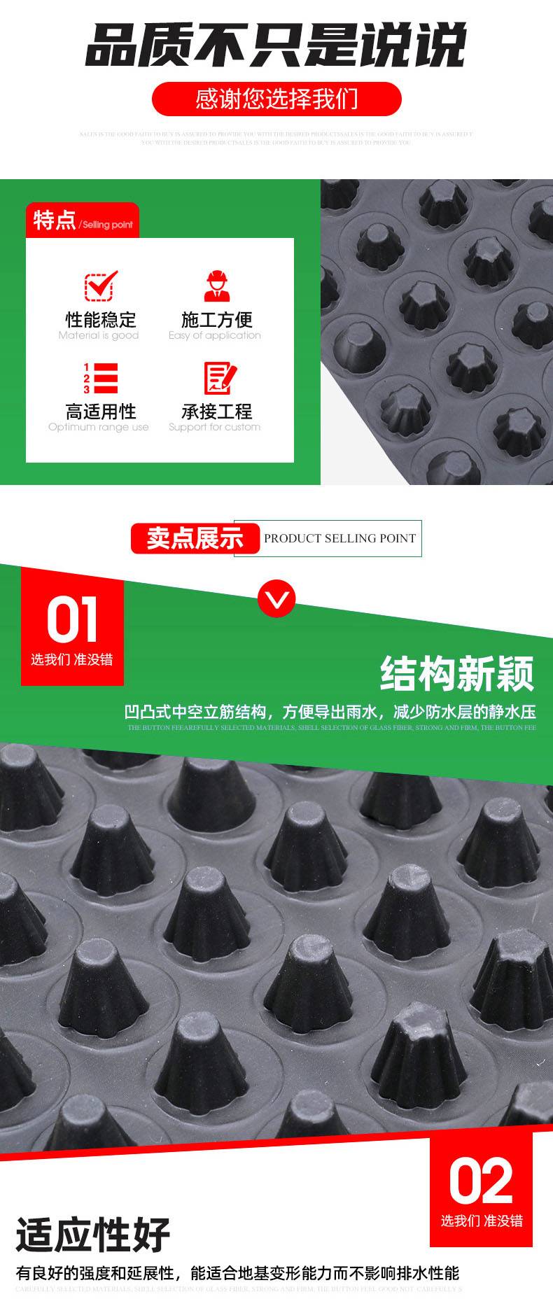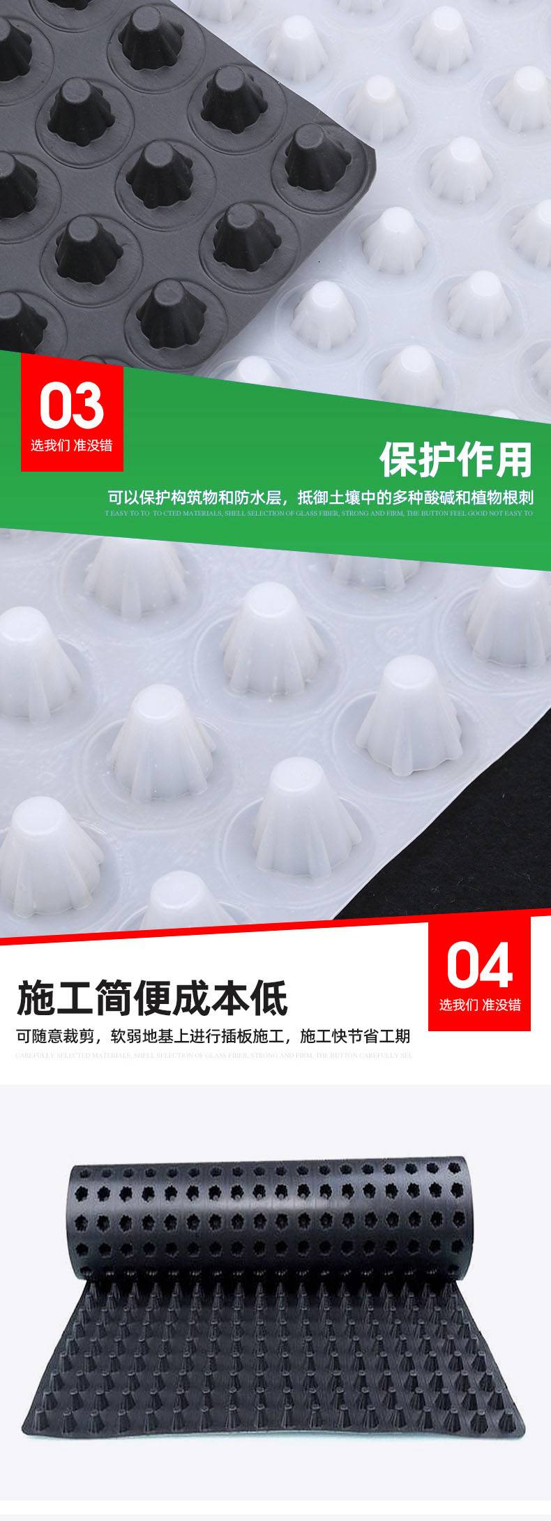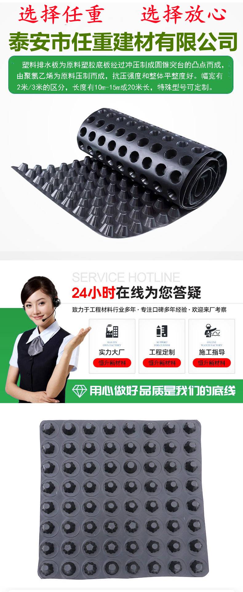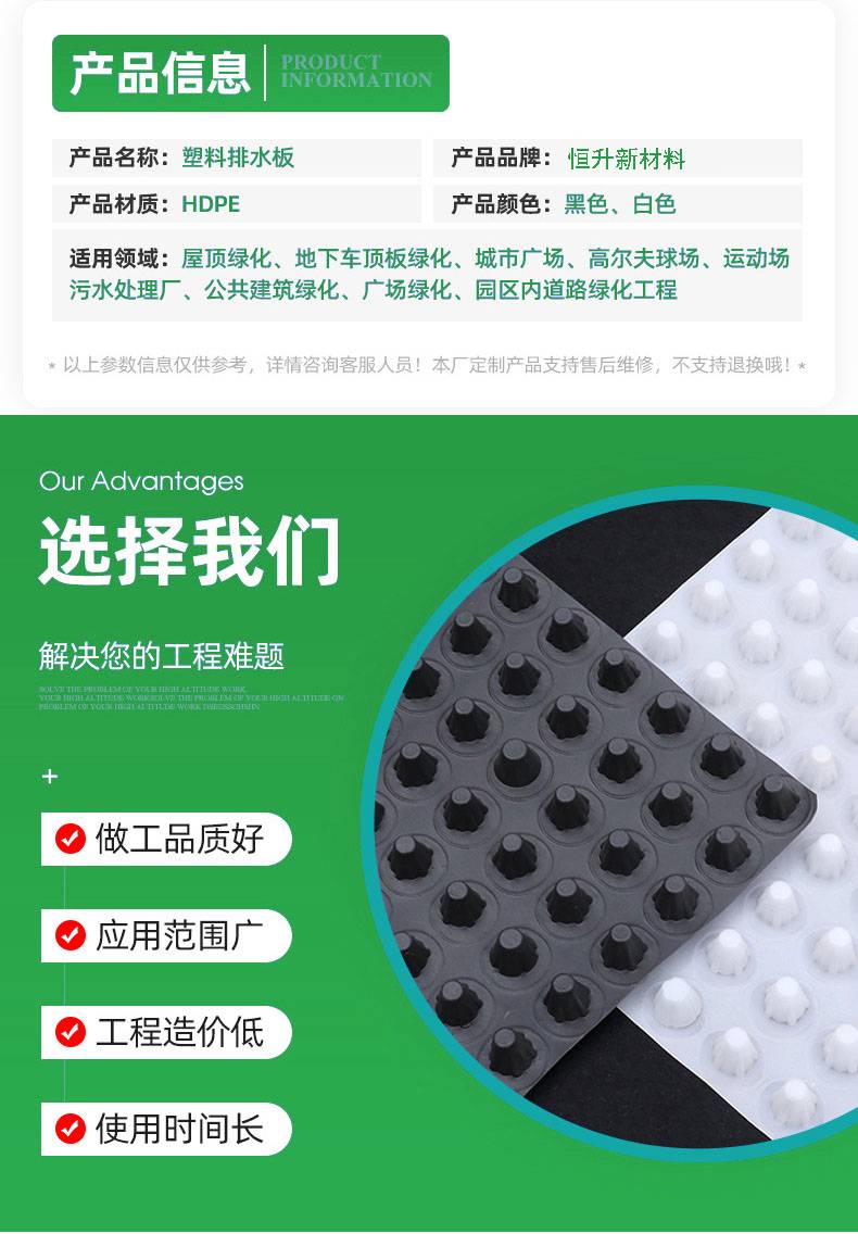 塑料凸点排水板 高抗压地下车库疏水板地下室凹凸型塑料板