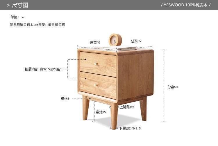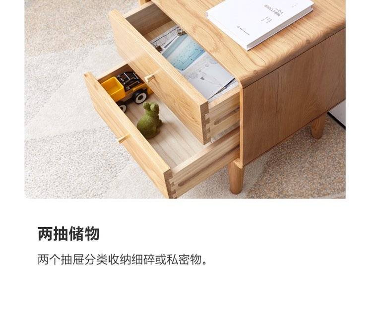 源氏木语全实木床头柜北欧橡木收纳储物柜现代简约卧室床边小柜子