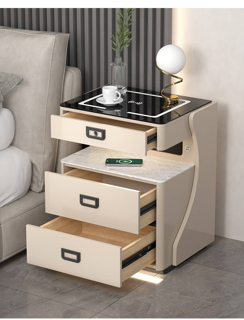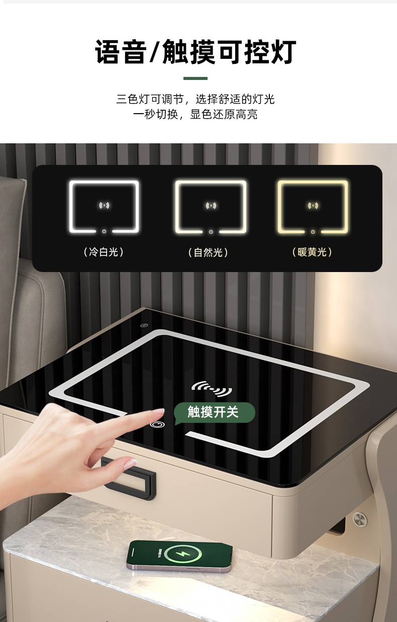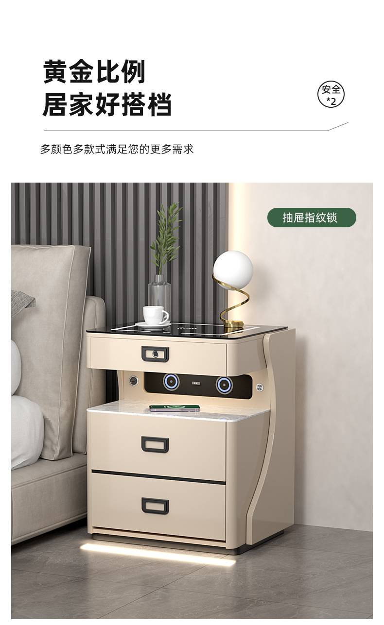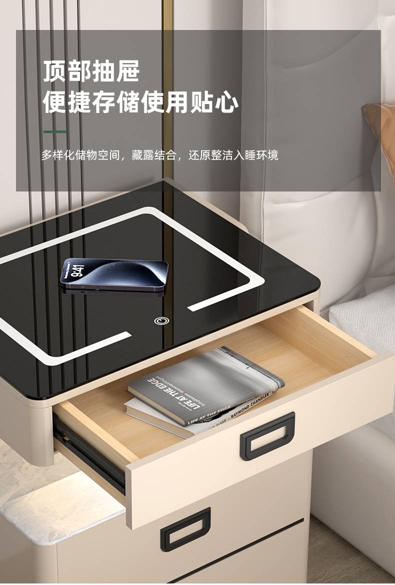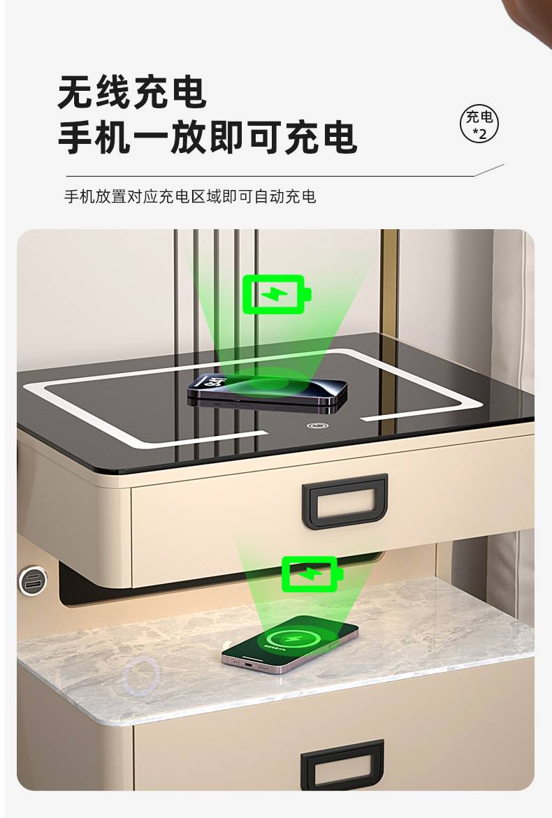 智能床头柜卧室简约现代床边小柜子储物柜北欧窄带灯多功能收纳柜