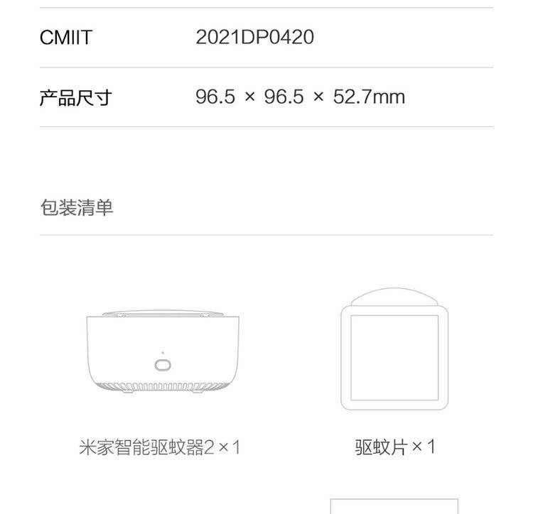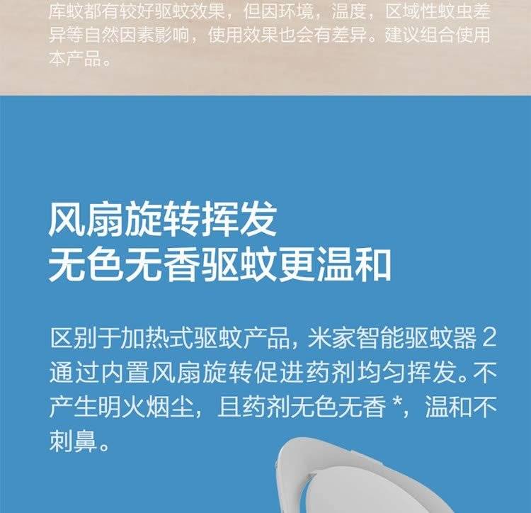 米家小米智能驱蚊器2轻音便携无烟长效驱蚊驱虫家用室内婴儿电蚊香米家智能驱蚊器2