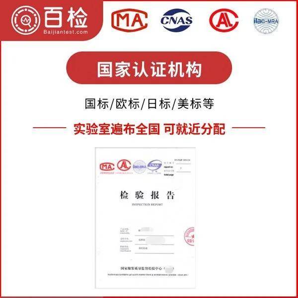 百检网第三方检测提供纺织、食品、材料、化妆品、电子电器、化工原料、成分分析、汽车配件及内饰件等产品检测,服务于公司、企业、个体商户、研究项目,报告可用于电商平台、商超入驻、出口贸易。目前我们提供的常规检测服务一般依据GB国标、行标进行测试,此外还提供美标、欧标、日标等外标检测服务,非标项目需提供具体方法制定方案,欢迎咨询。