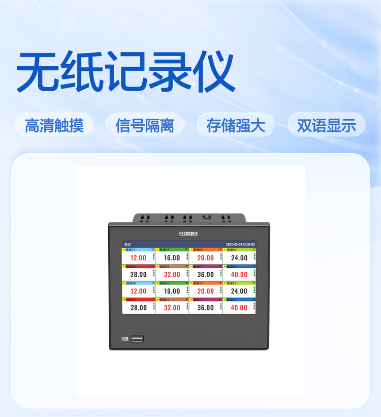 迅鹏无纸记录仪WPR70E触摸屏1~32通道报警变送打印通讯无 纸记 录仪