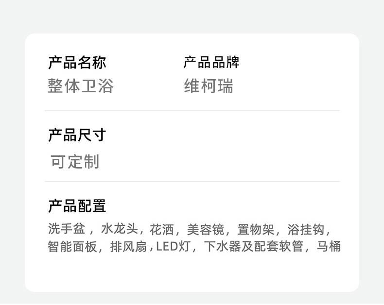 维柯瑞 旅馆酒店用 集成独立整体卫生间 干湿分离淋浴房 贴心售后