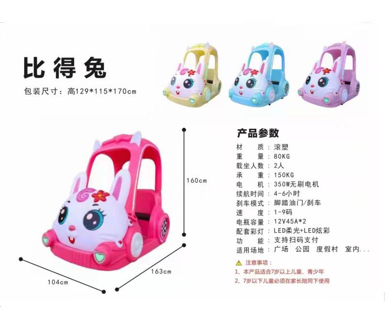 新款广场彼得兔摆摊碰碰车 儿童商场游乐场设备电动玩具双人