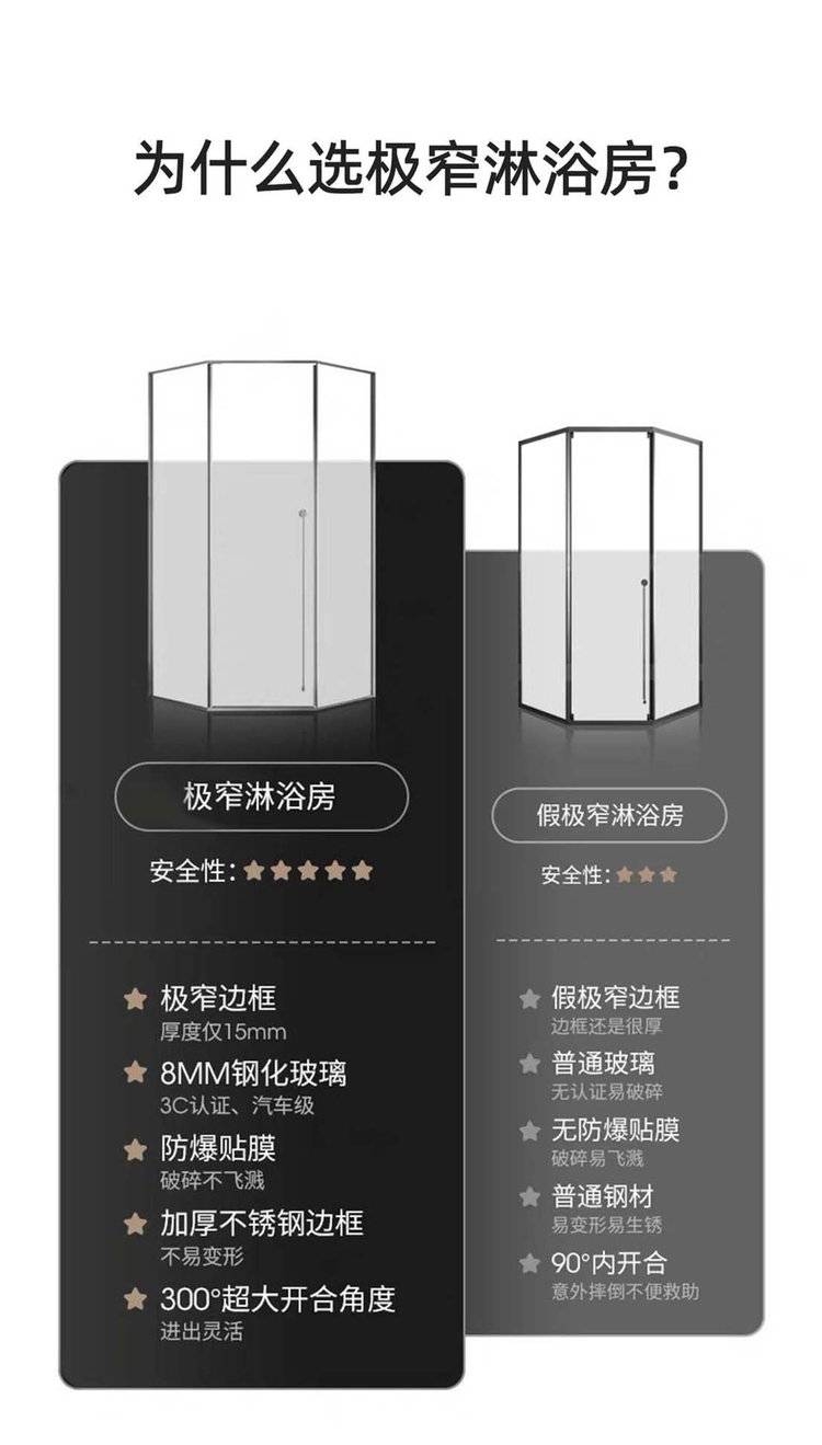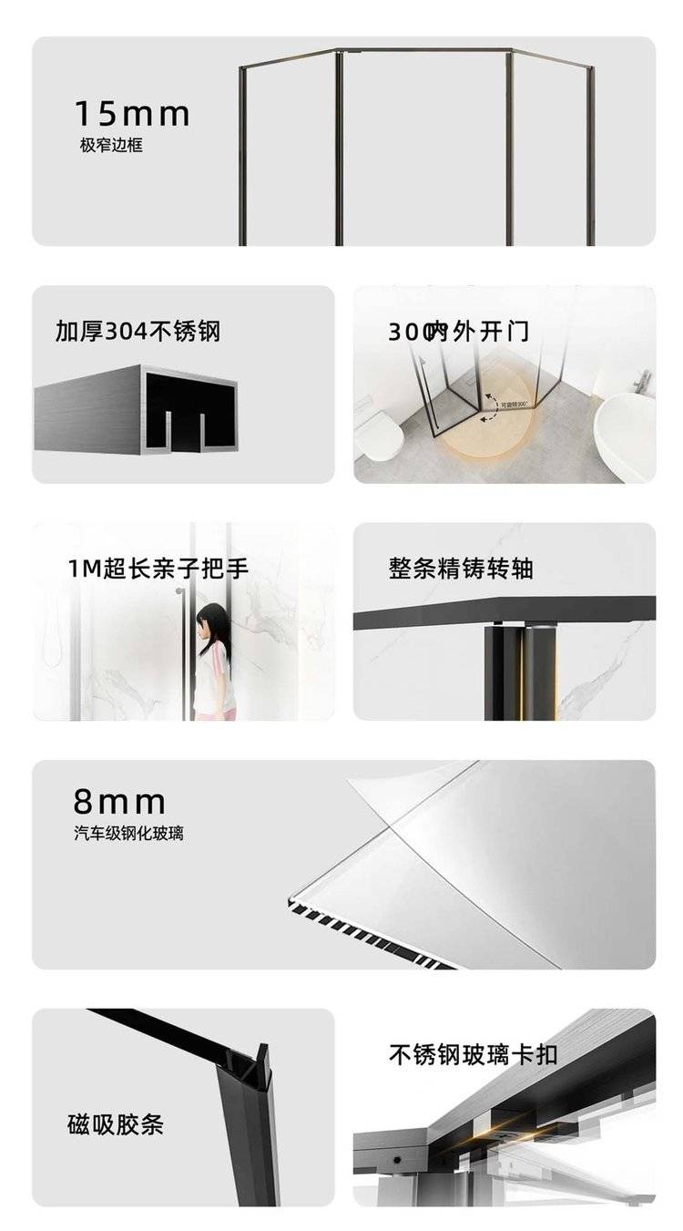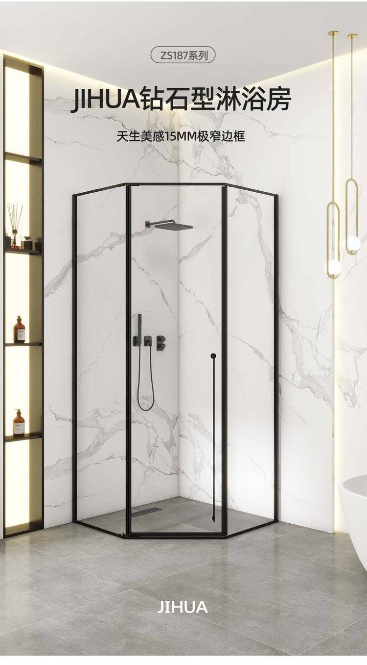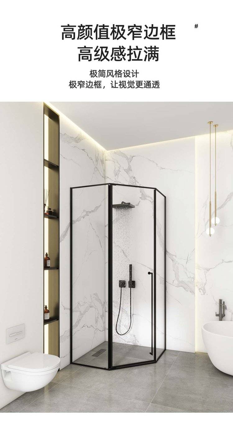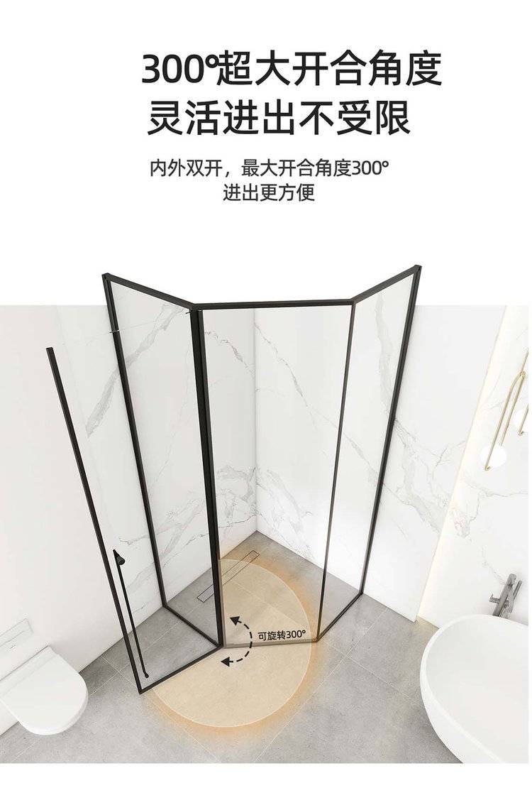 下沉式钻石型淋浴房 干湿分离浴室平开玻璃门洗澡隔断