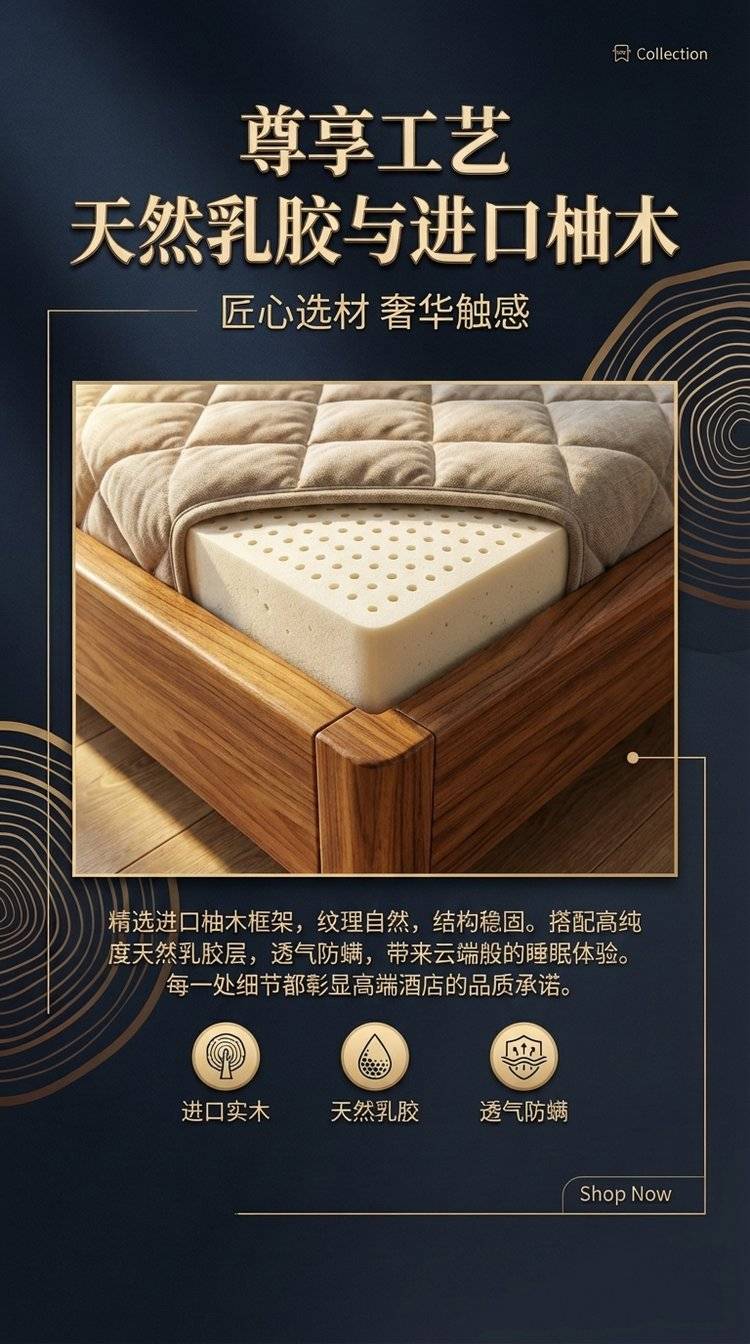 进口柚木框架天然乳胶 酒店实木床架 易清洁打理 按需定制