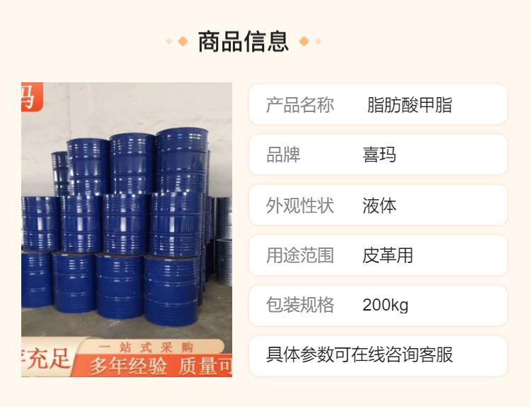 2222喜玛脂肪酸甲脂皮革用国标水不溶200kg 化工助剂