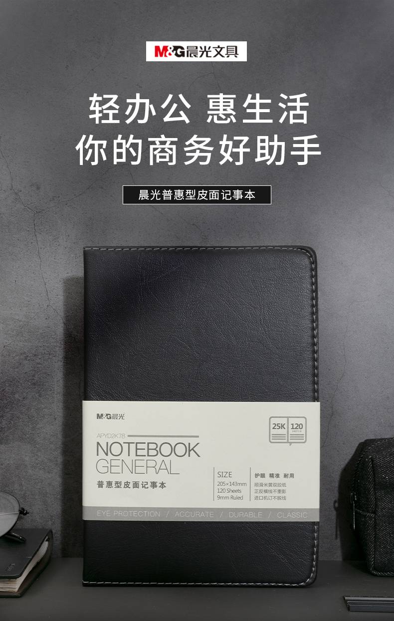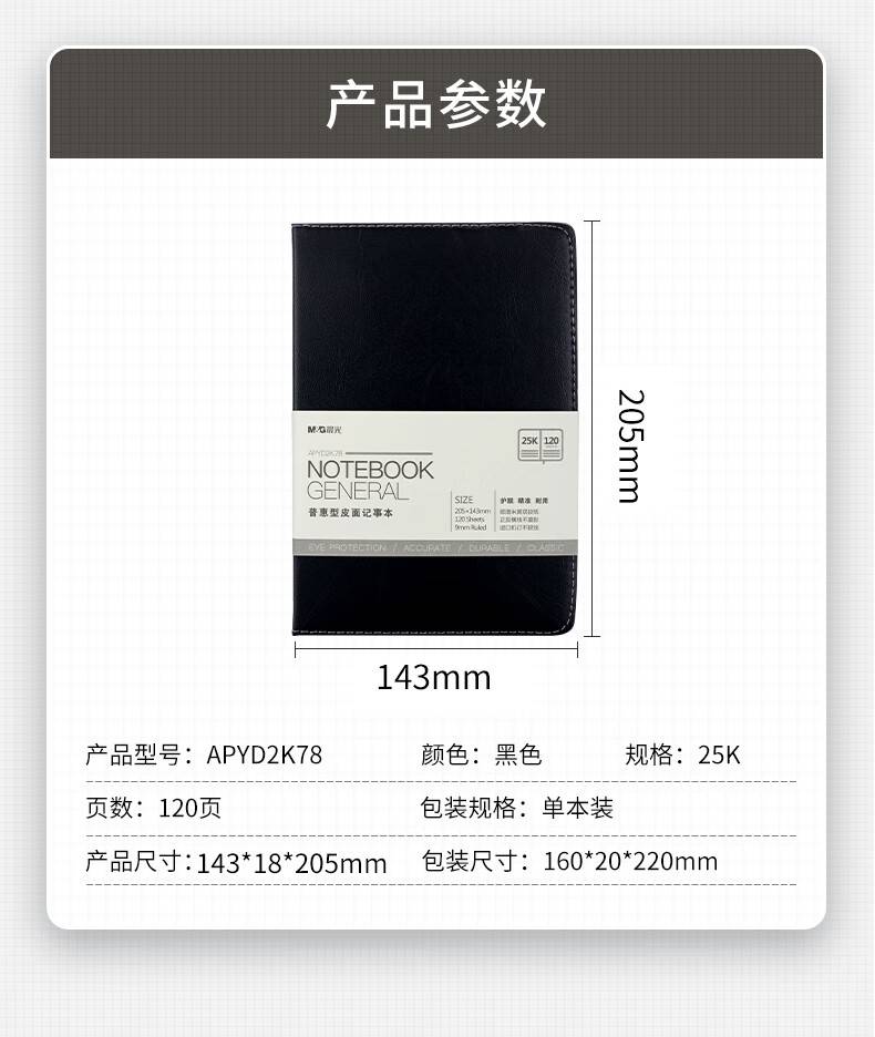 晨光会议记录皮面本 A5/25K笔记本 120张黑色记事本 单本装APYD2K78
