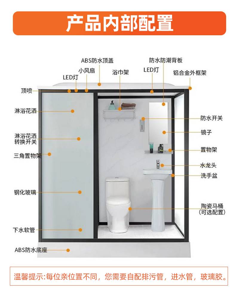 宏鑫 民宿公寓打包箱房浴室 玻璃集成厕所 整体淋浴房 一体式卫生间