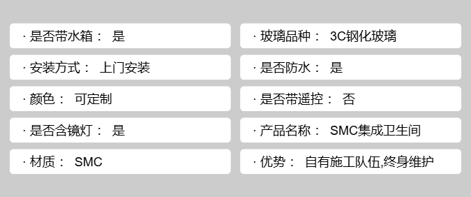 依枫SMC集成卫生间 3C钢化玻璃淋浴房 工厂定制带水箱