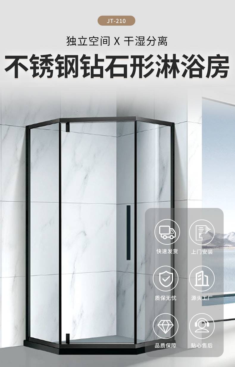 智辉 浴室钻石型淋浴隔断干湿分离 304不锈钢整体卫生间玻璃淋浴房