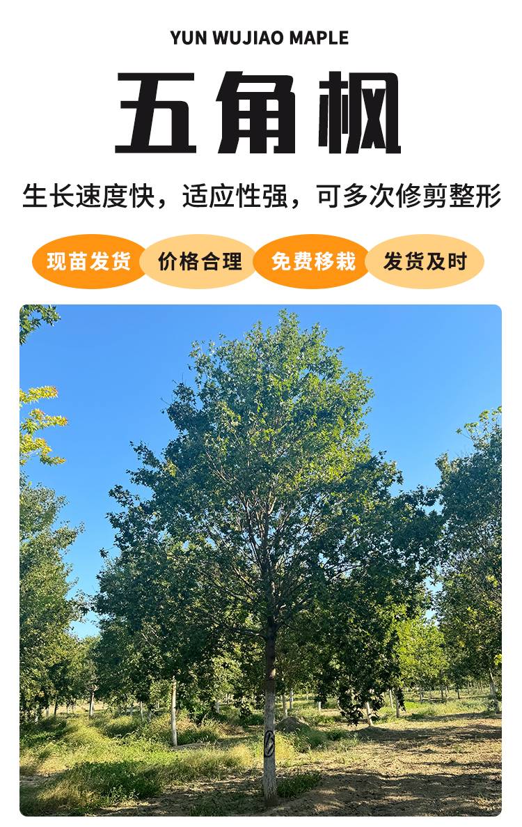 12公分高杆五角枫 街道绿化五角枫树 庭院风景树