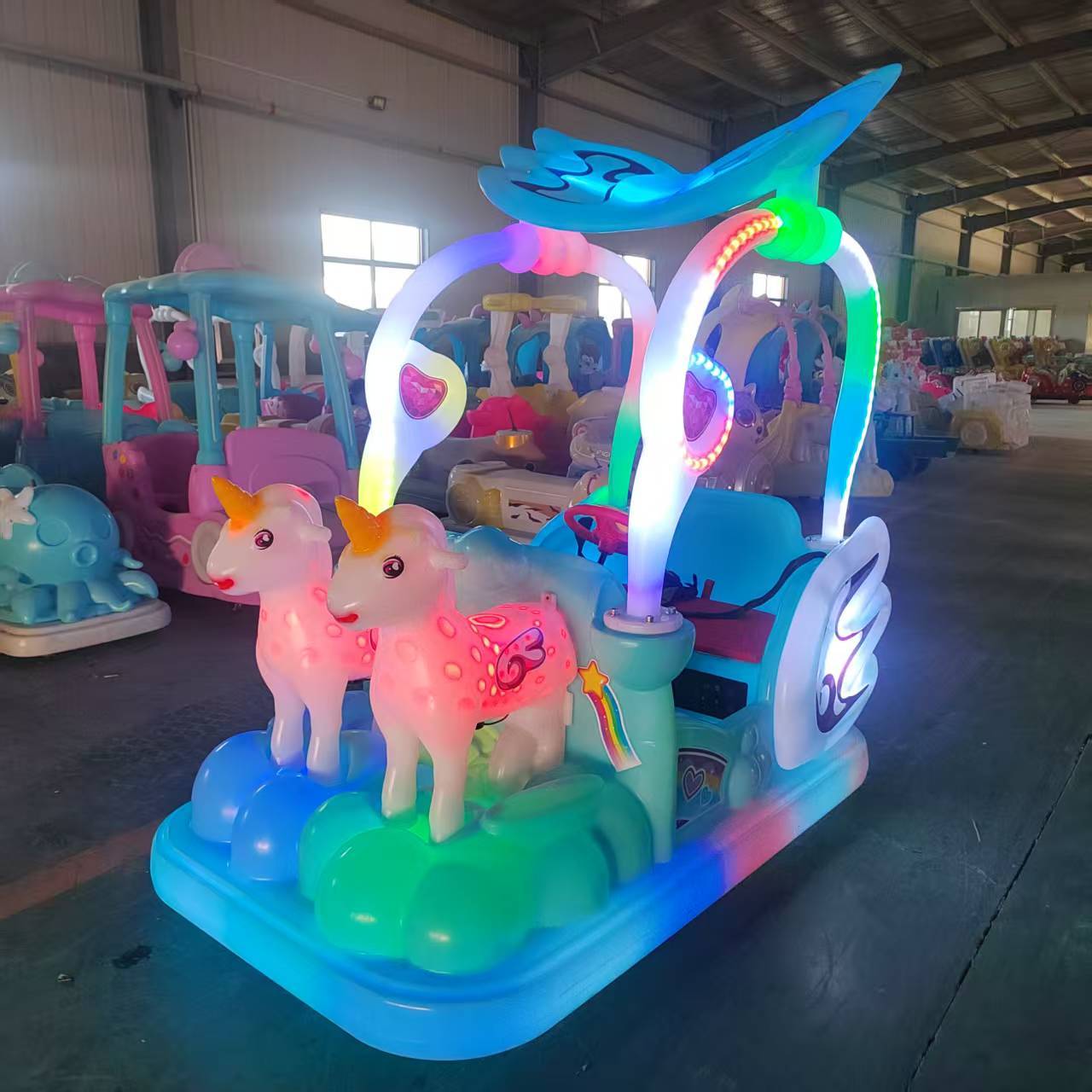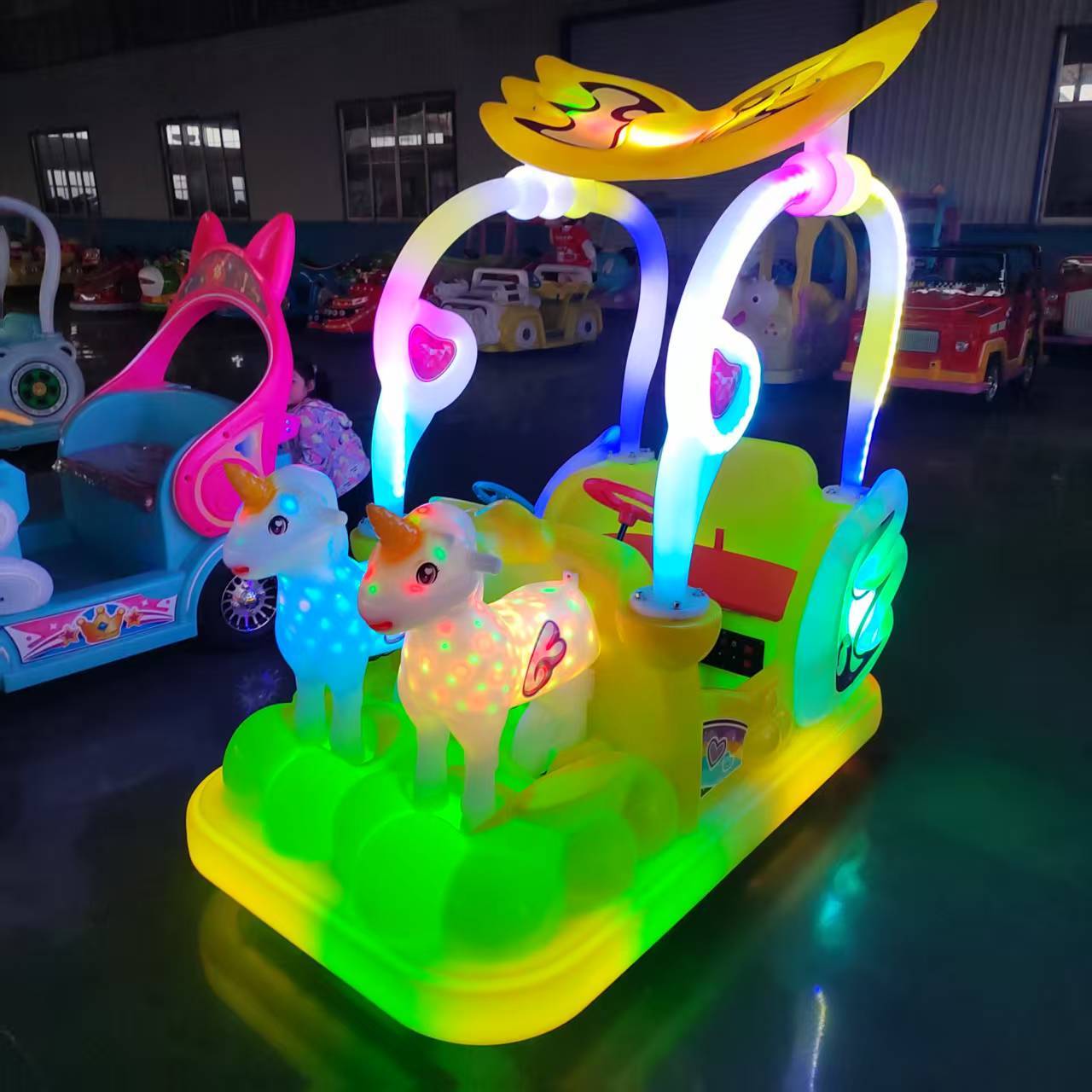 4人独角兽冰陆两用碰碰车扫码 广场儿童景区成人电动发光游乐设备